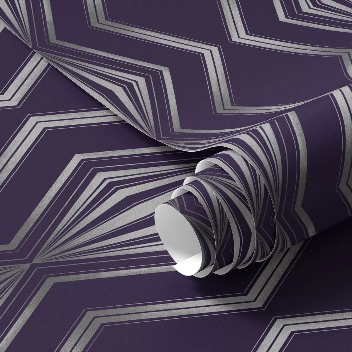 Tapeta Sytě fialové pozadí s diamanty a šedými klikatými čarami Nr. a00974v1