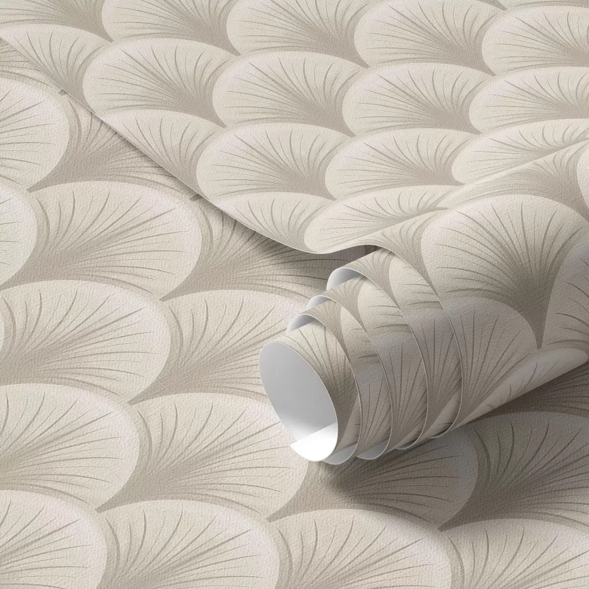 Tapeta Béžové vějířovité oblouky s jemnými paprsky na světlém pozadí Nr. a00978