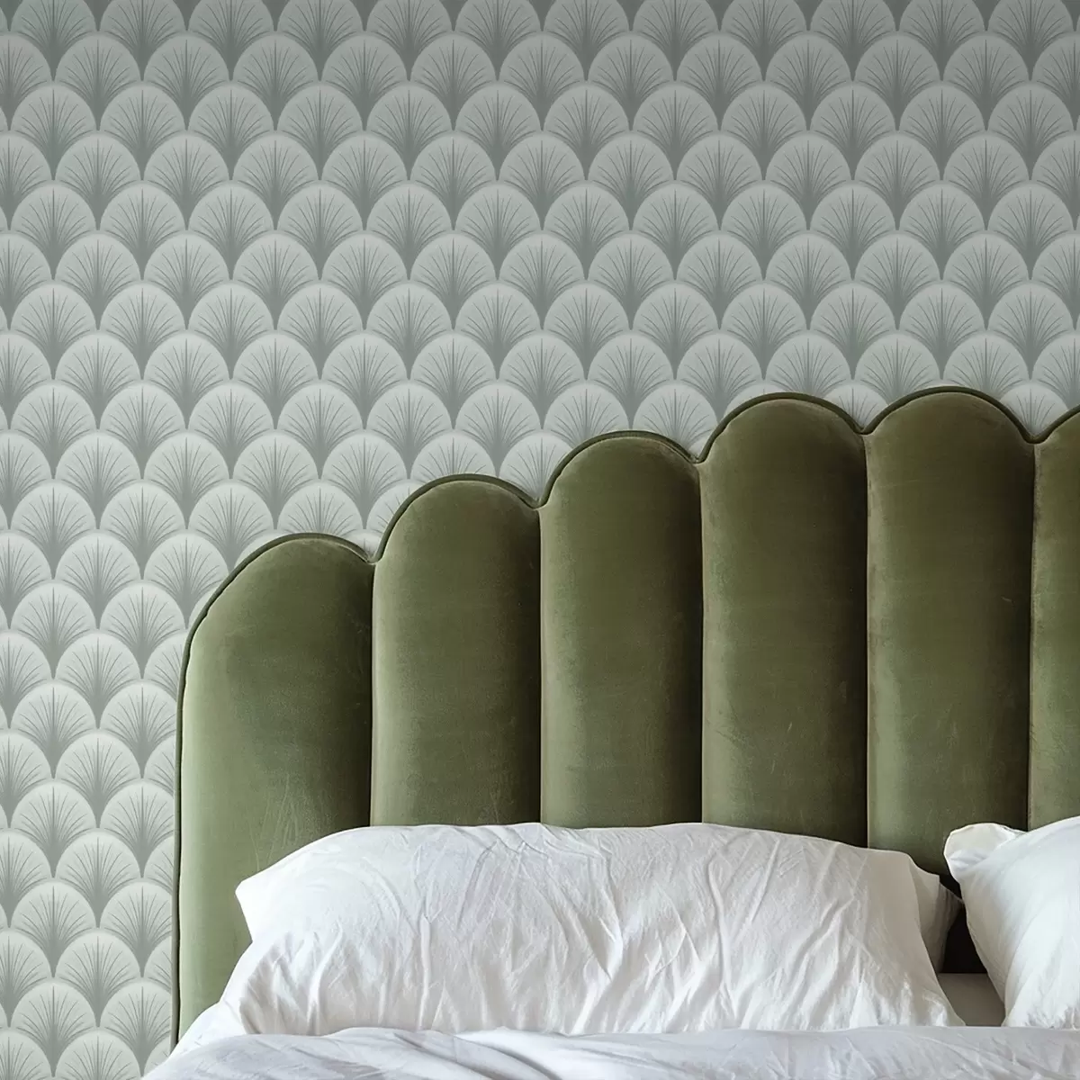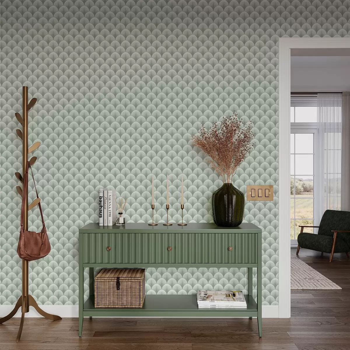 Tapeta Mátové vějíře s paprsky na jemně zeleném pozadí Nr. a00978v2