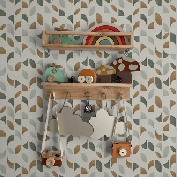 Tapeta Abstraktní půlkruhy a listy v zelené a terakotové barvě Nr. a00985