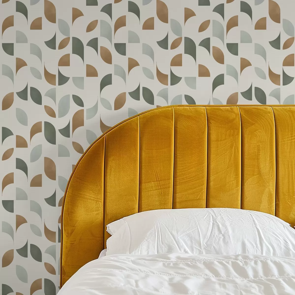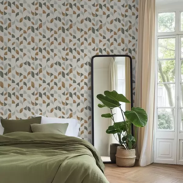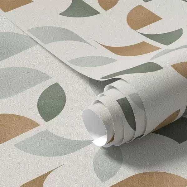 Tapeta Abstraktní půlkruhy a listy v zelené a terakotové barvě Nr. a00985