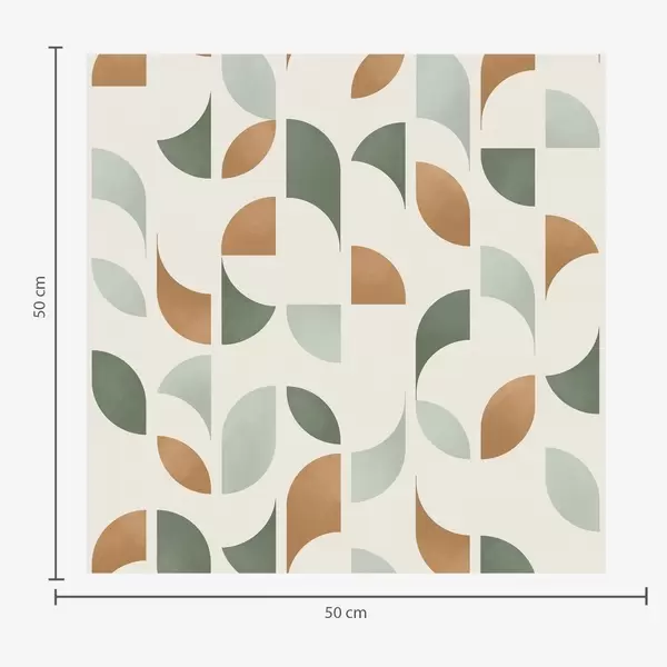 Tapeta Abstraktní půlkruhy a listy v zelené a terakotové barvě Nr. a00985