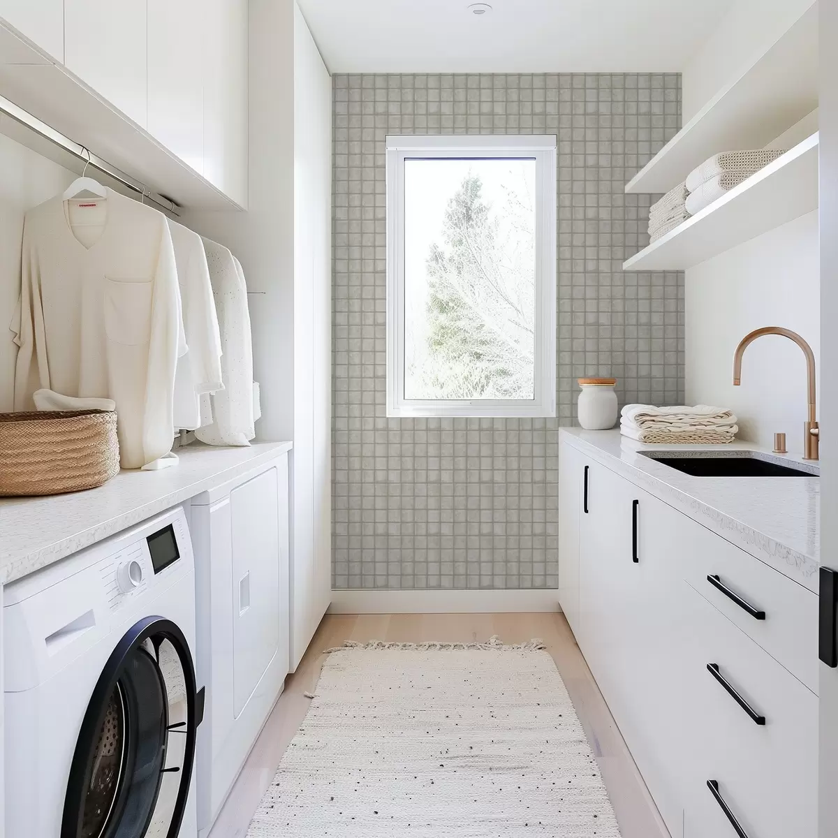 Tapeta Imitace čtvercových dlaždic v jemné šedozelené barevné paletě Nr. a00988