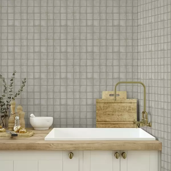 Tapeta Imitace čtvercových dlaždic v jemné šedozelené barevné paletě Nr. a00988