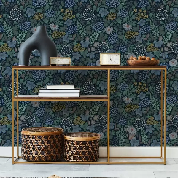 Tapeta Noční zahrada s modrými liliemi, bobulemi a divokou zelení Nr. a00996