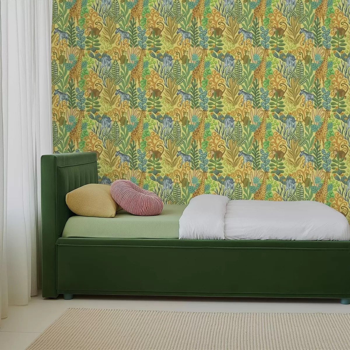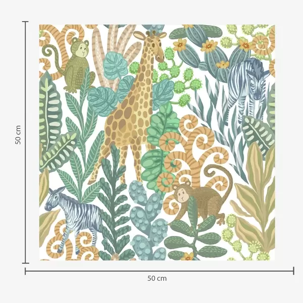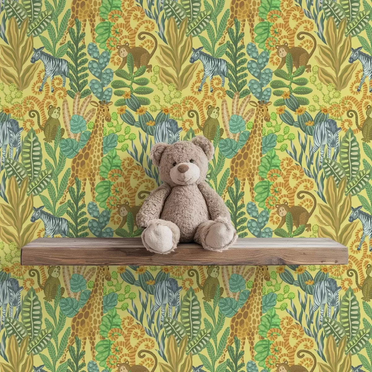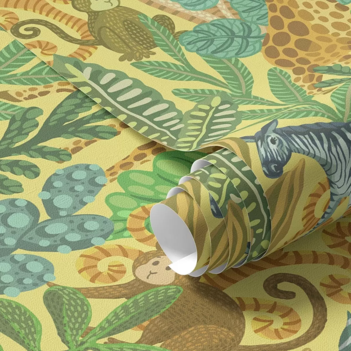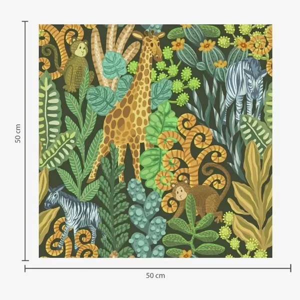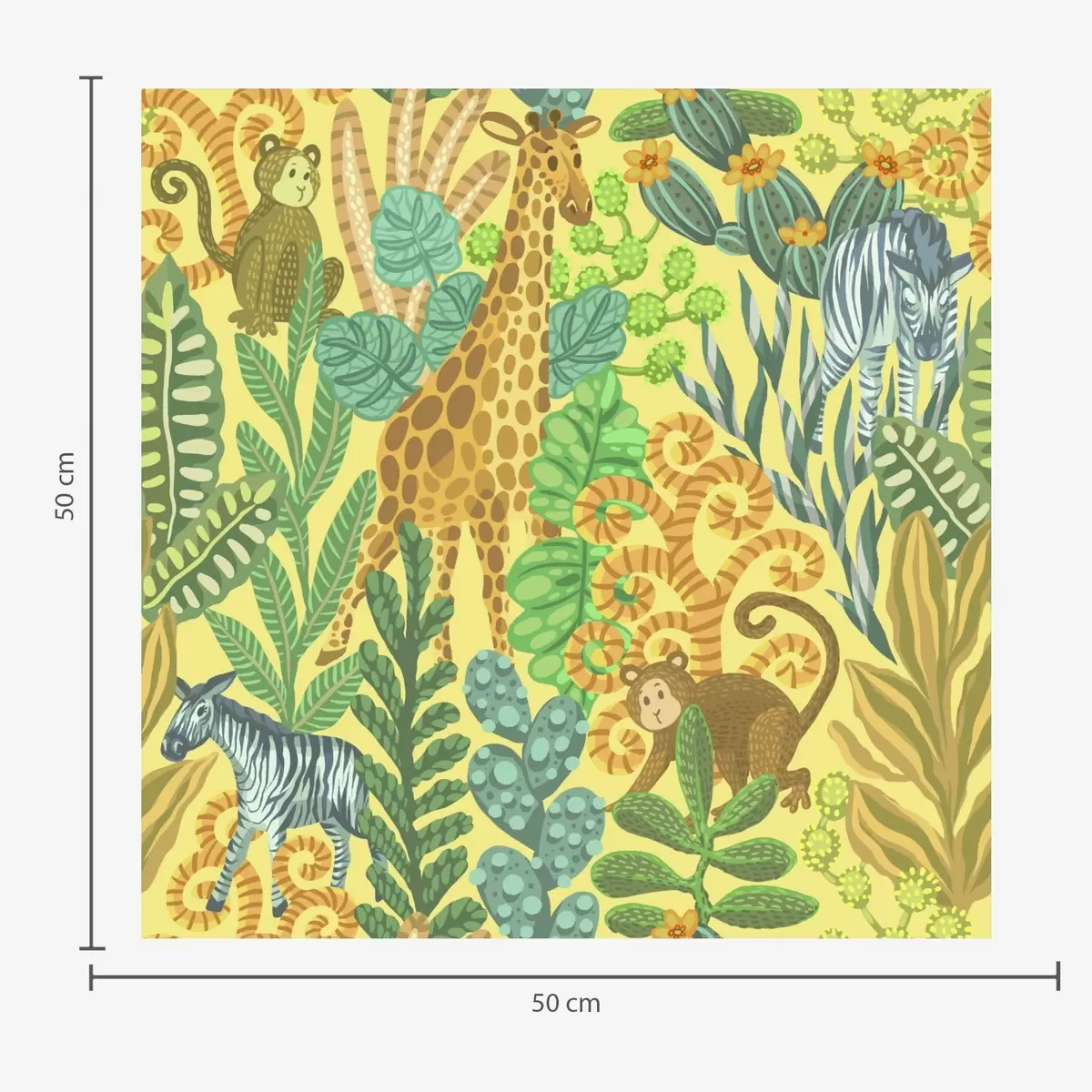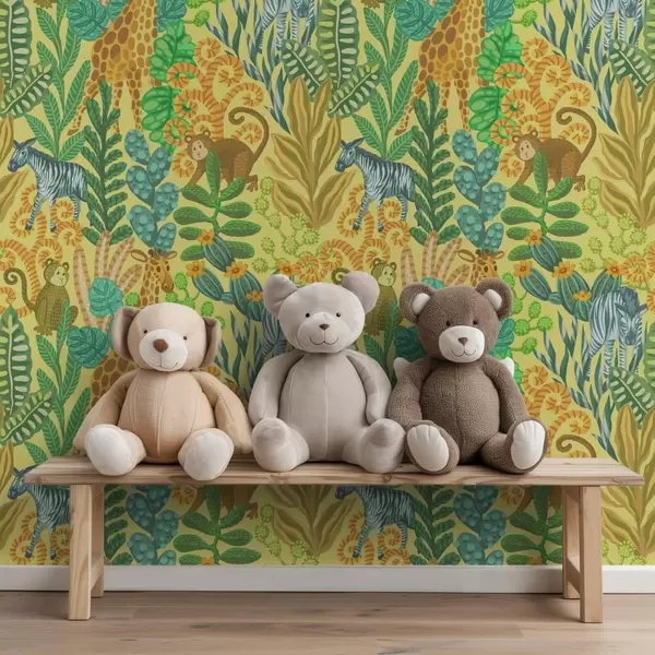 Tapeta Žirafa, zebra a opice v jasně žluté savaně Nr. a01000v1
