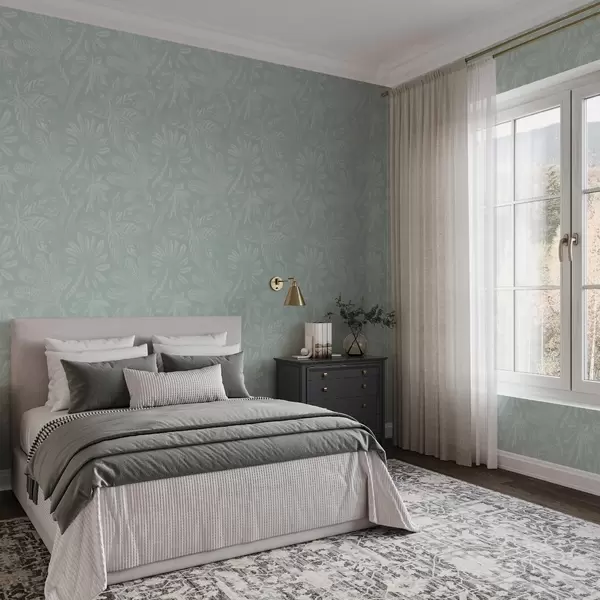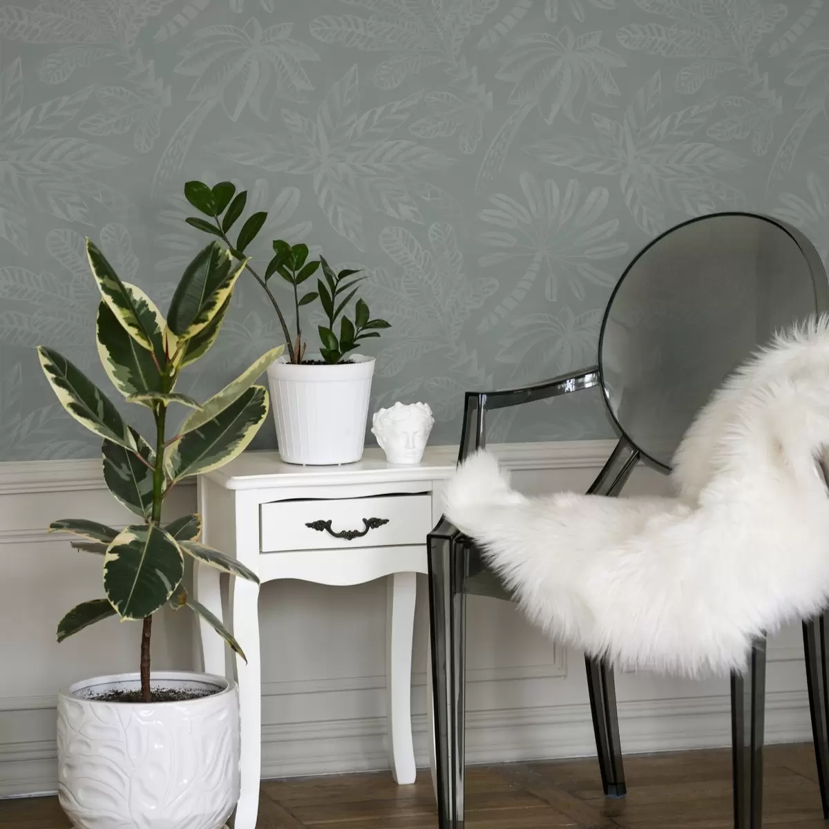 Tapeta Matné velké tropické listy v mátově šedé barvě Nr. a01001