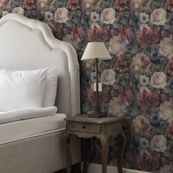 Tapeta Malířská kytice velkých květů na tmavě indigovém pozadí Nr. a01021