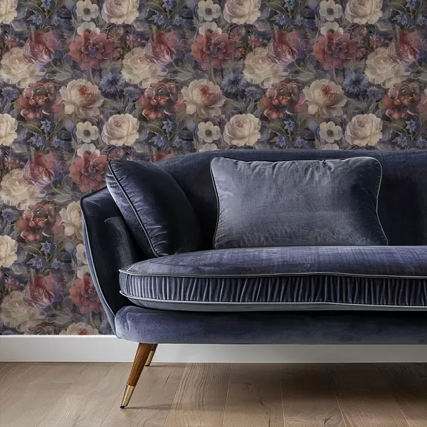 Tapeta Malířská kytice velkých květů na tmavě indigovém pozadí Nr. a01021