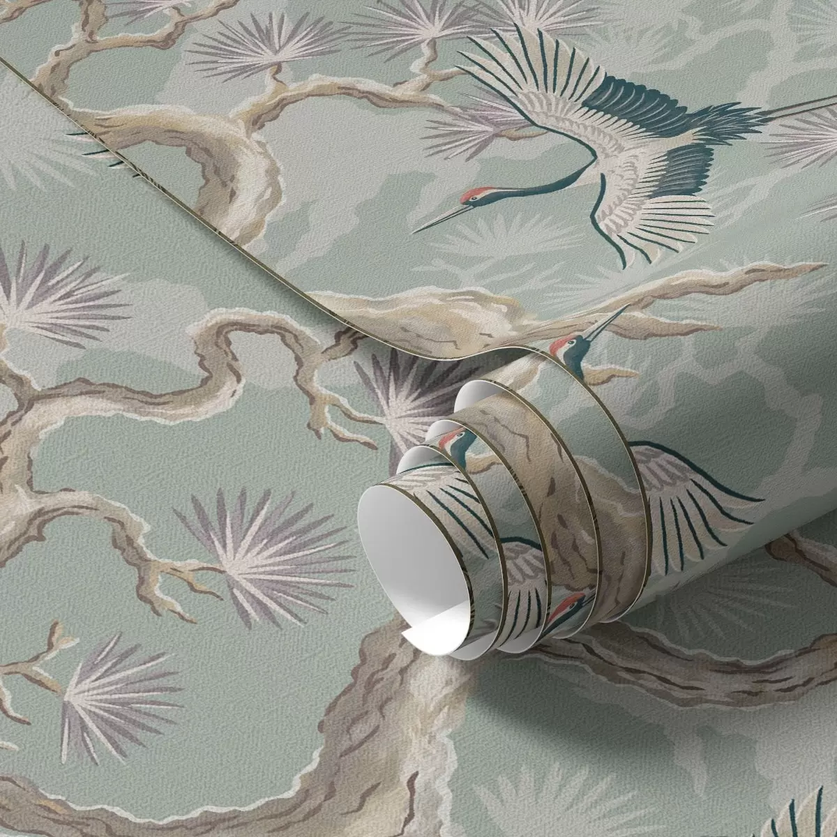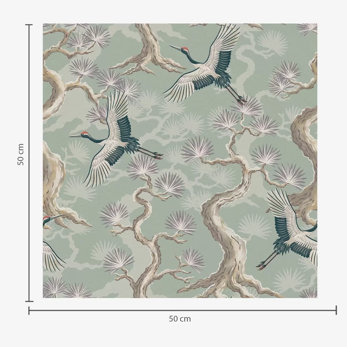 Tapeta Jeřábi mezi zakřivenými větvemi na jemném šalvějově zbarveném pozadí Nr. a01023