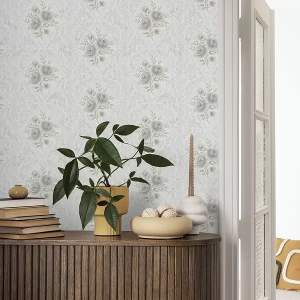 Tapeta Světlý damaškový vzor se šedými růžemi v jemných kosočtvercích Nr. a01024