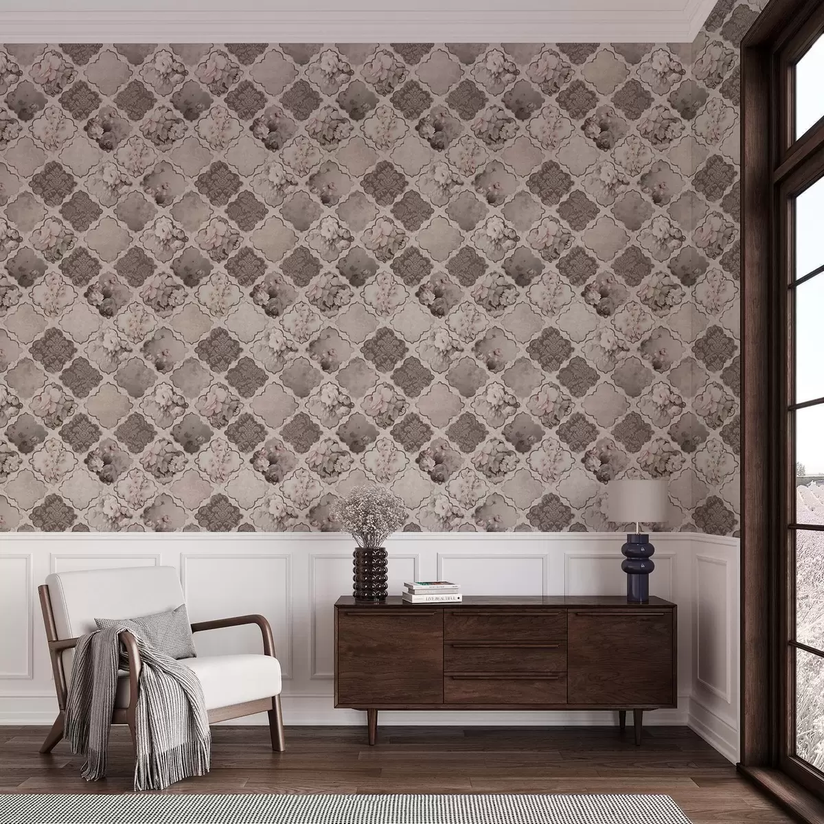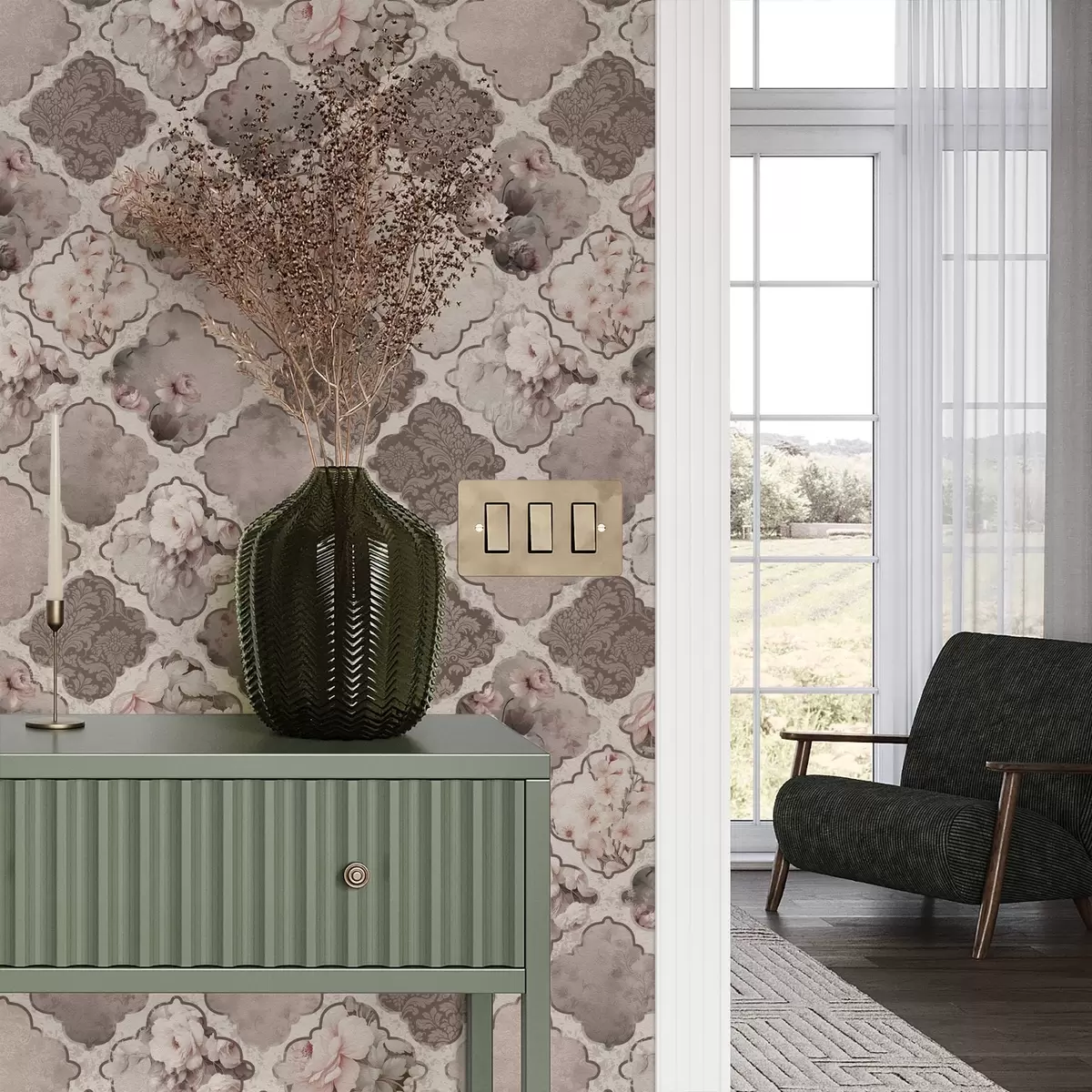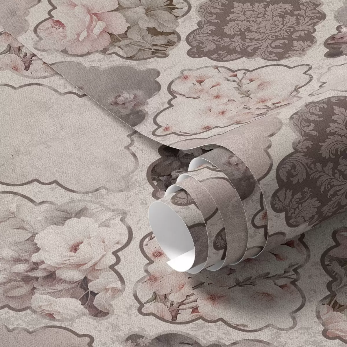 Tapeta Romantická mozaika květinových medailonů v prachových tónech Nr. a01027