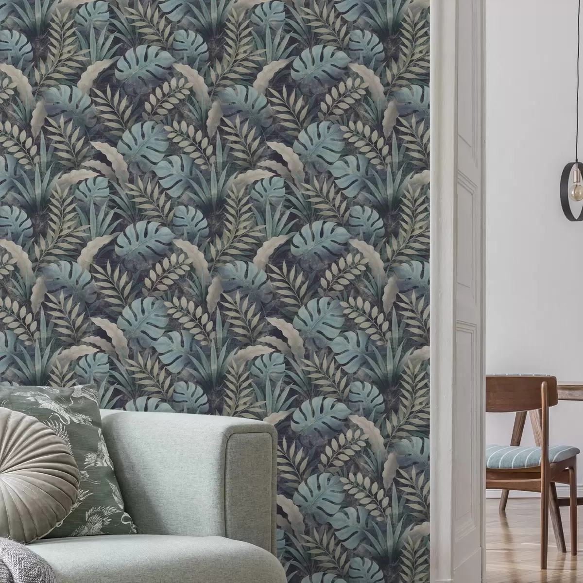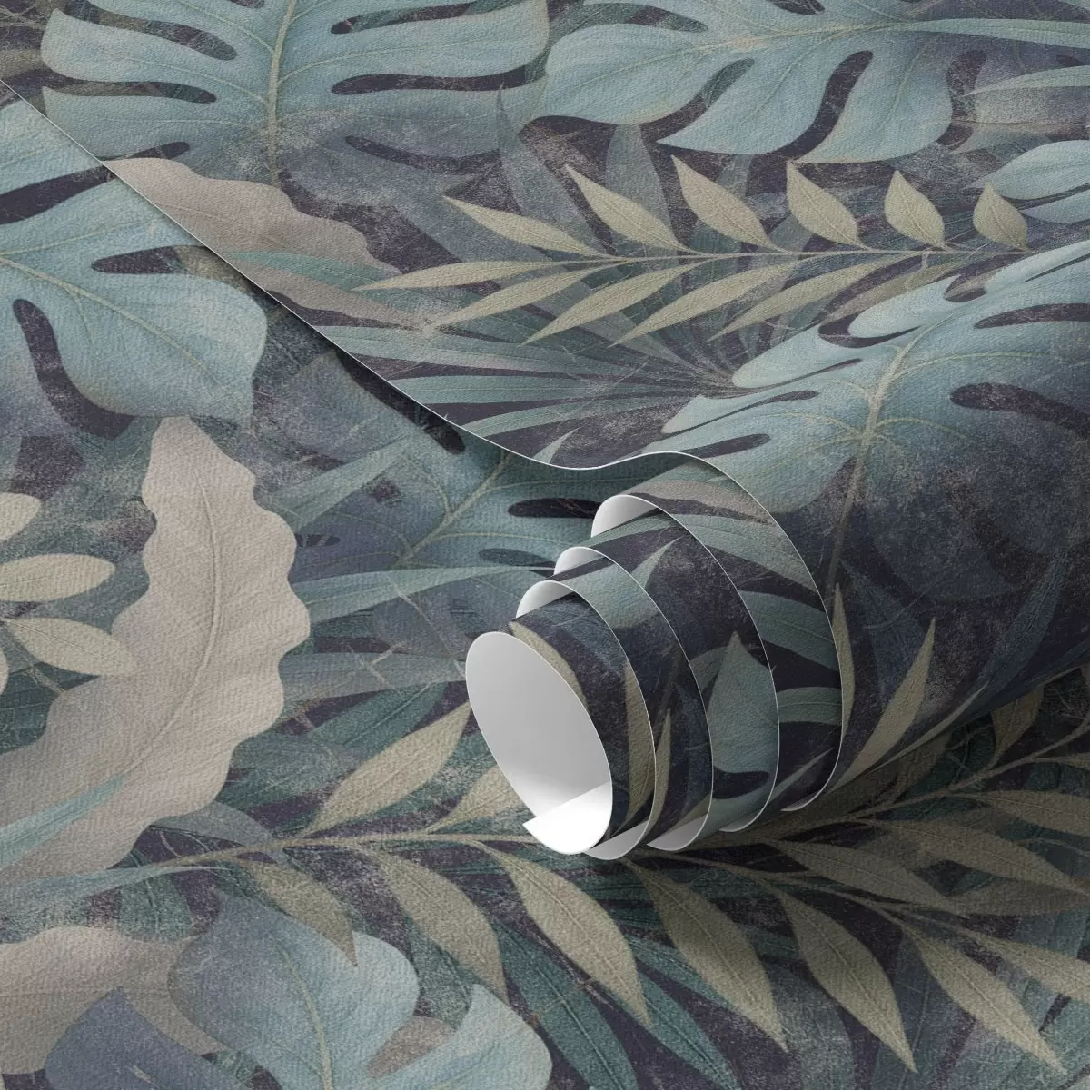 Tapeta Tropické listy v chladných modrozelených tónech Nr. a01035