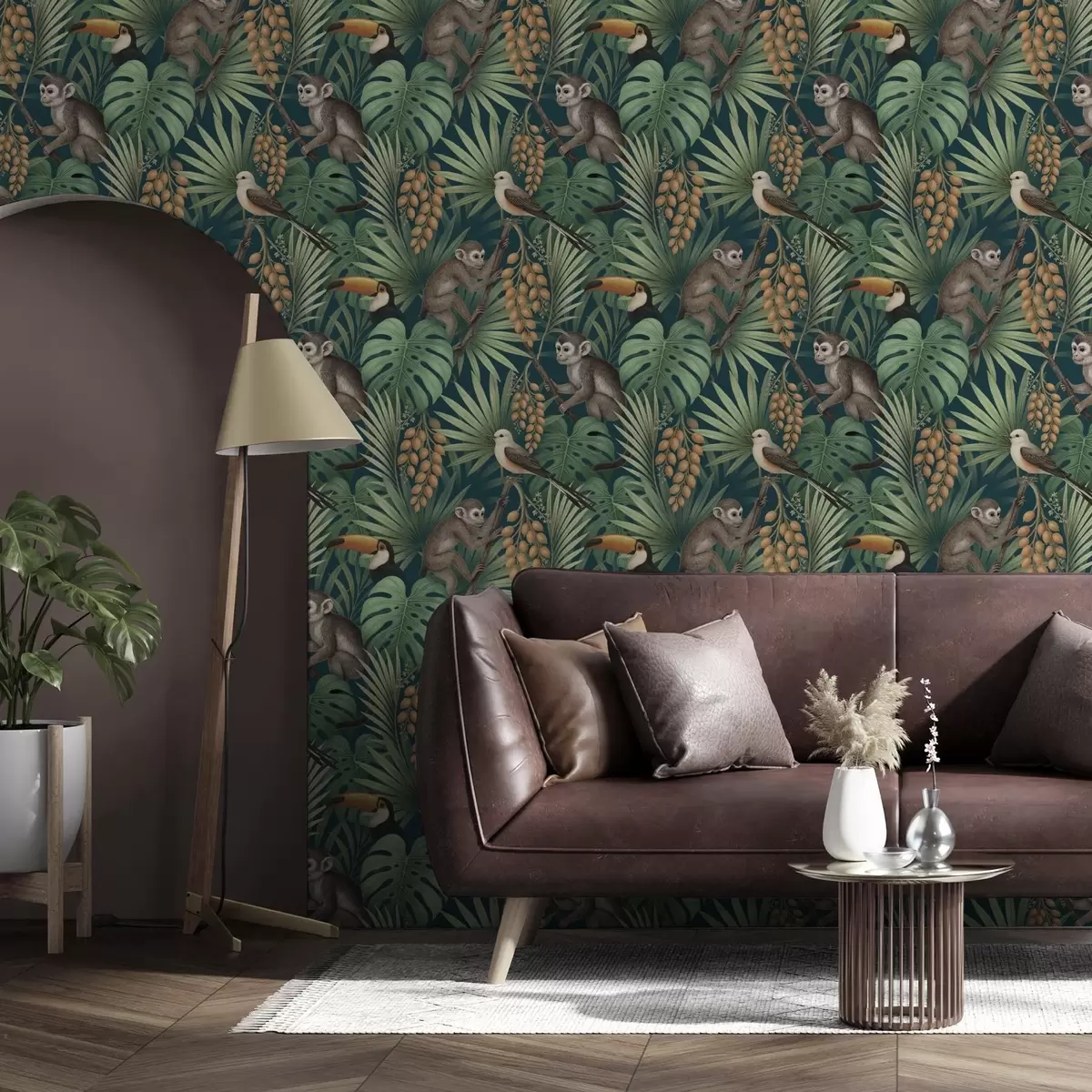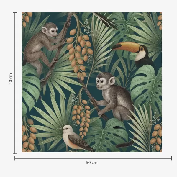 Tapeta Opice a tropické ptáky v hustém porostu džungle Nr. a01037