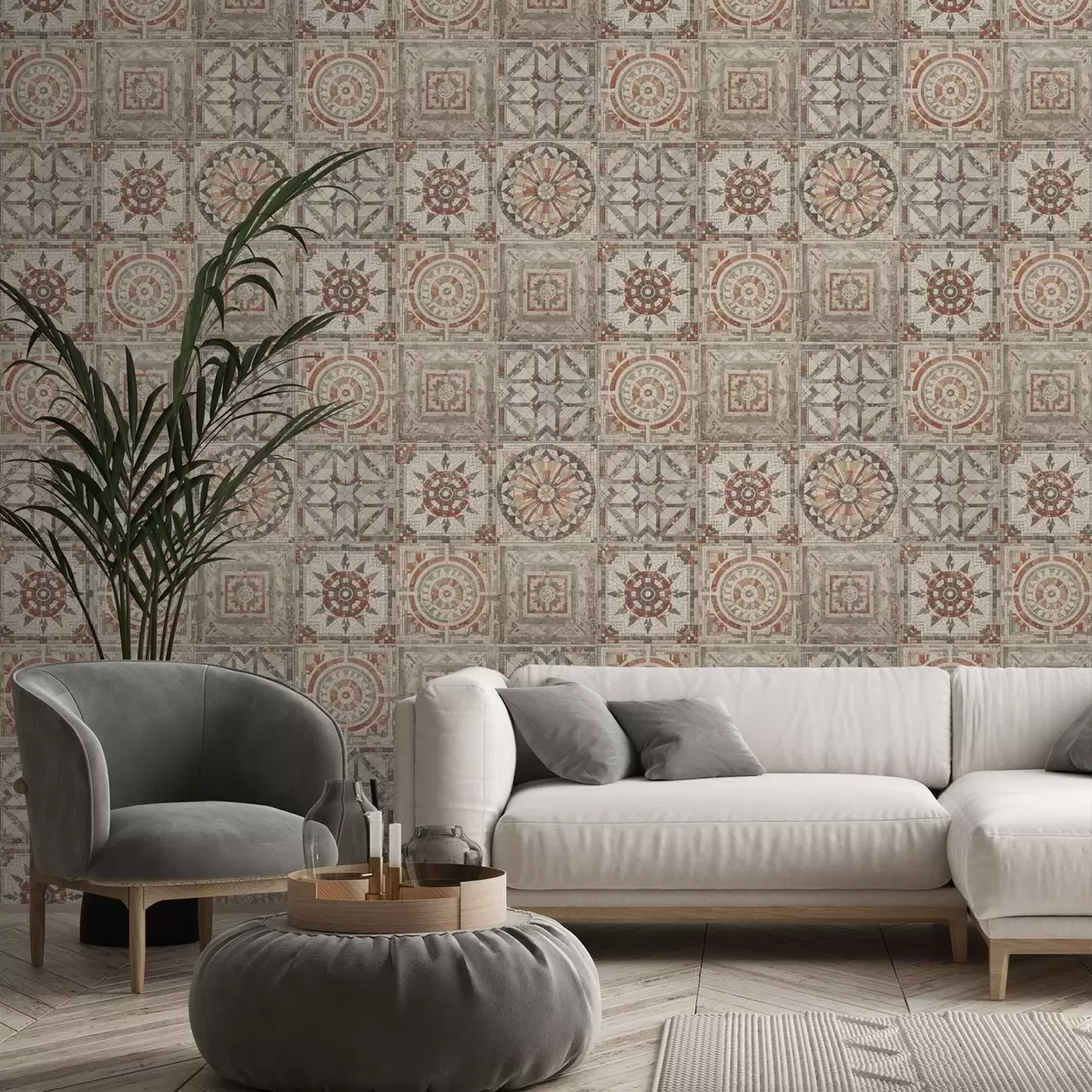 Tapeta Staré kamenné mozaikové medailony s opotřebovanými detaily Nr. a01042