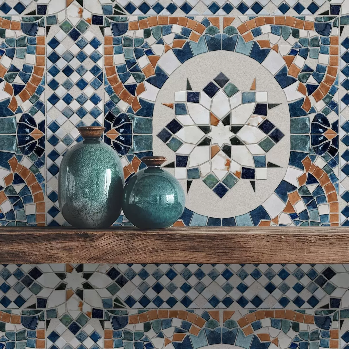 Tapeta Zářivá marocká mozaika v modro-tyrkysových tónech Nr. a01043