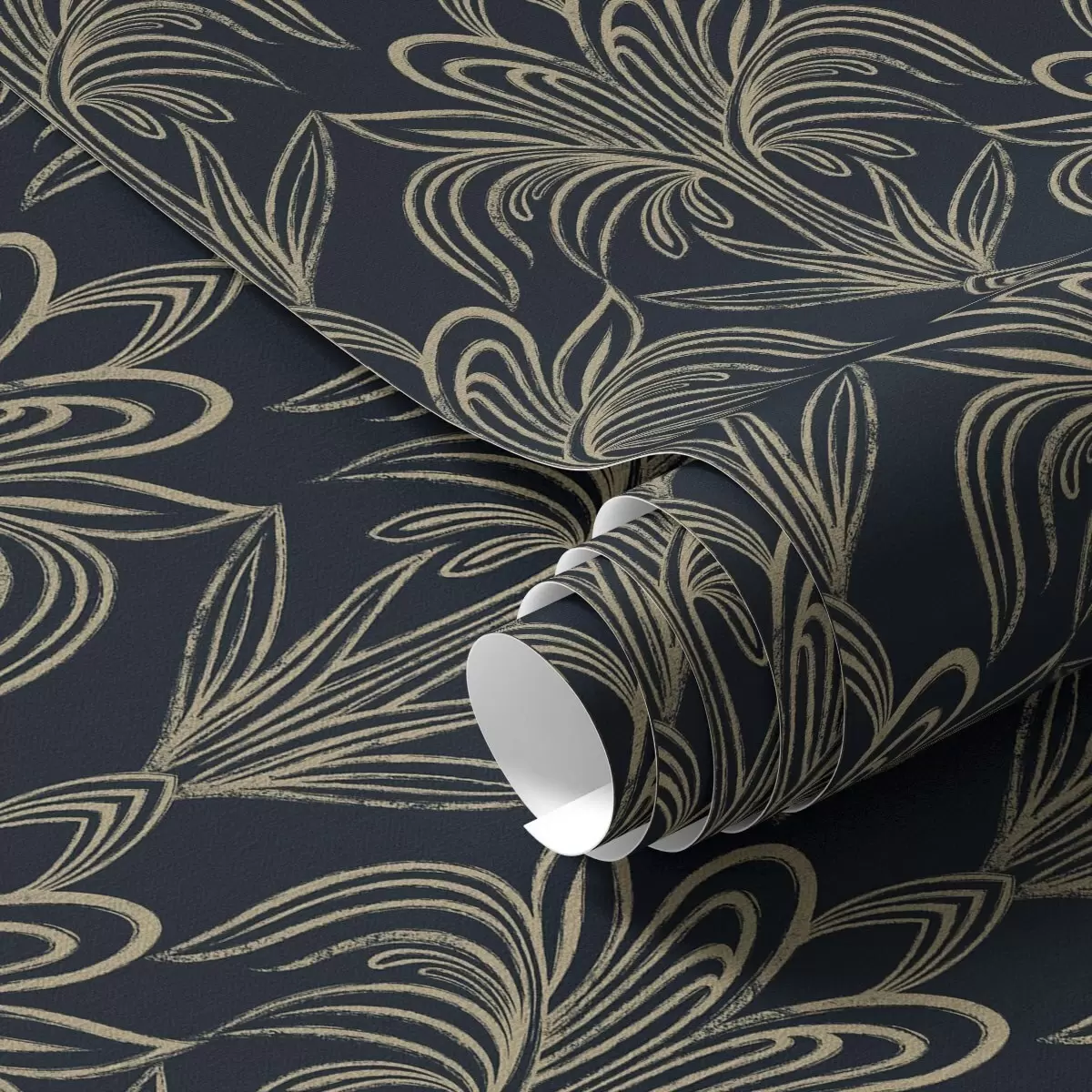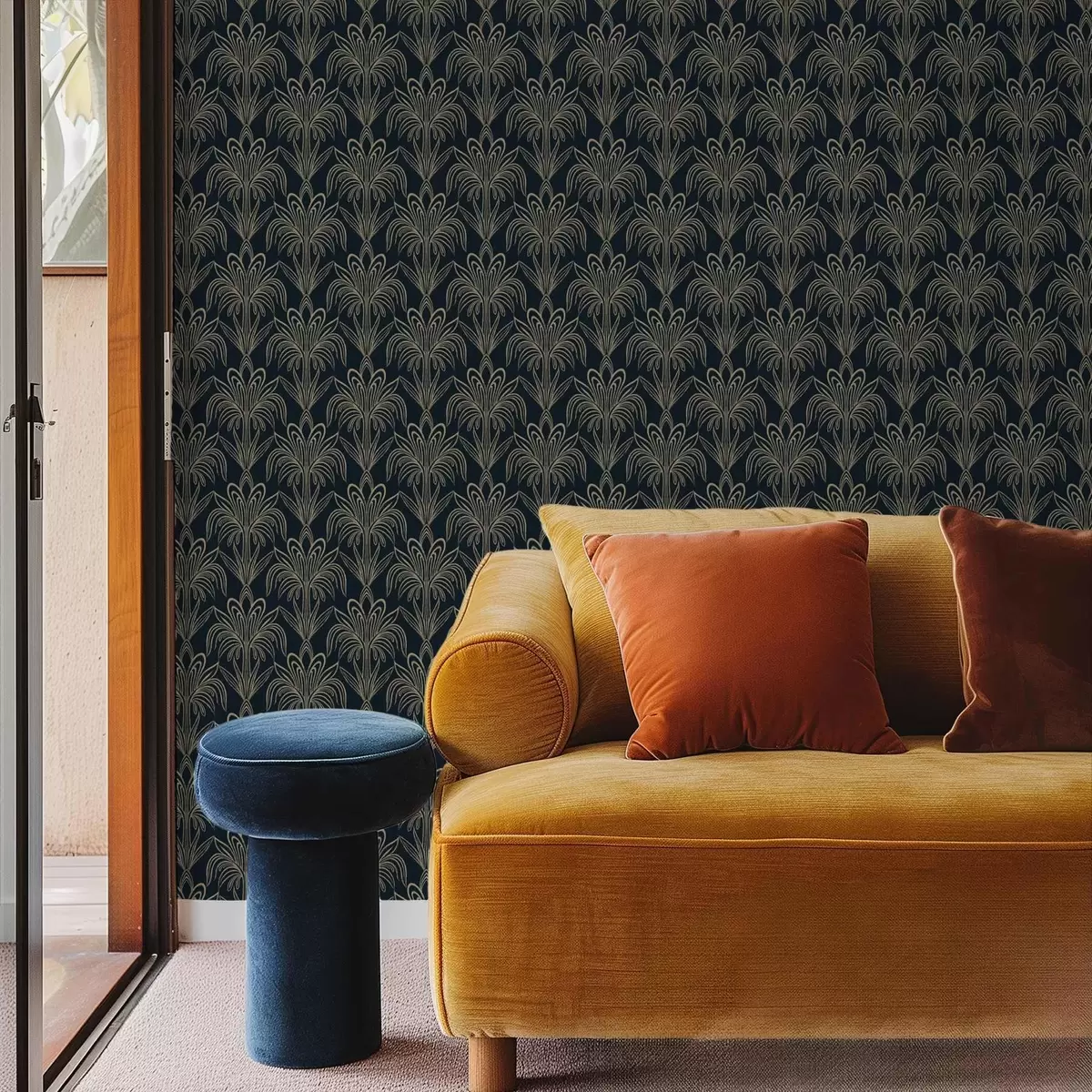 Tapeta Tmavý ornament ve stylu art deco se stylizovanými rostlinami Nr. a01065
