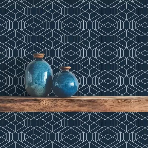 Tapety Tmavě modrá geometrická mřížka z kostek a01066v1