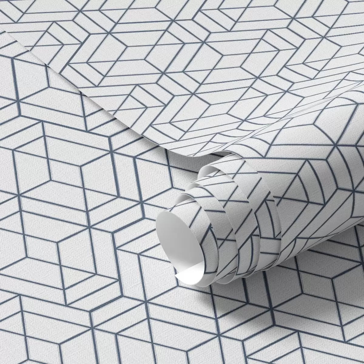 Tapeta Bílé pozadí s modrými trojrozměrnými geometrickými kostkami Nr. a01067