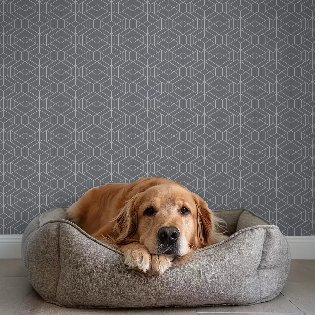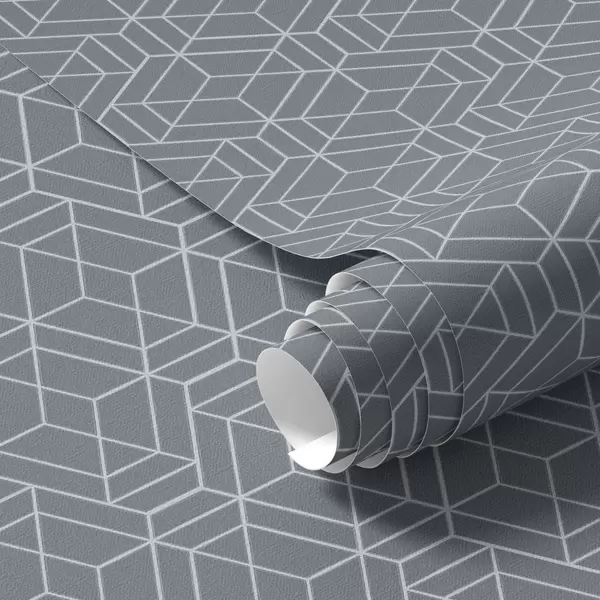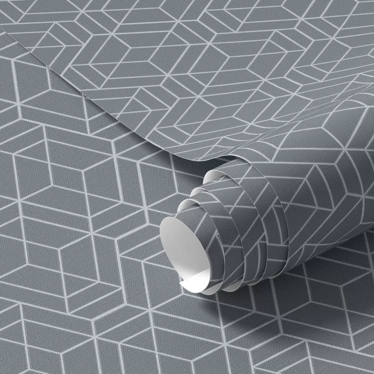 Tapeta Šedé pozadí s bílými trojrozměrnými kostkami v mřížce Nr. a01067v2