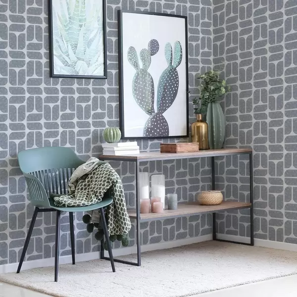 Tapeta Šedá mozaika střídající zaoblené a obdélníkové tvary Nr. a01069