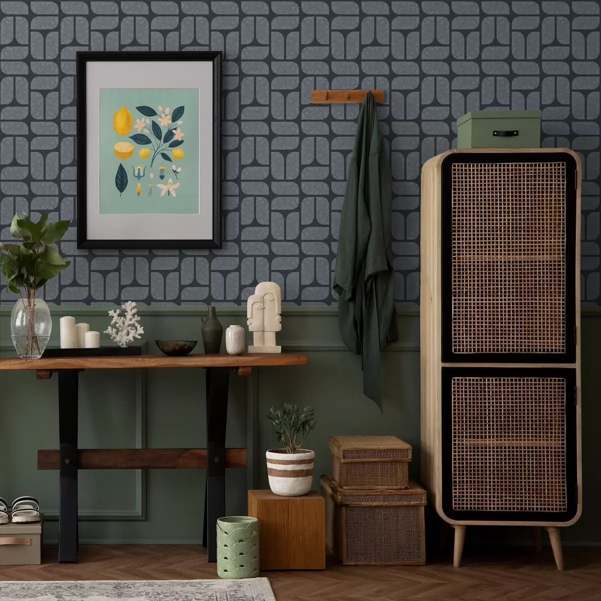 Tapeta Tmavé pozadí se šedou mozaikou zaoblených modulů Nr. a01069v1