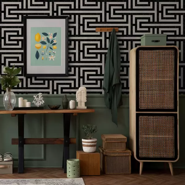Tapeta Černobílý geometrický bludištový vzor Nr. a01073