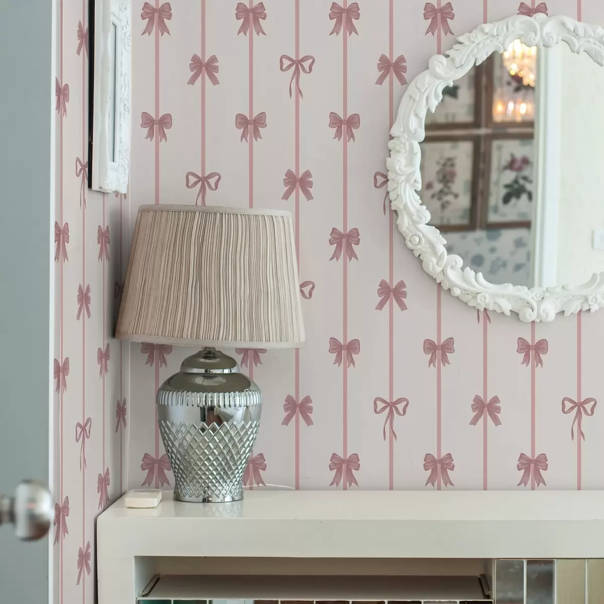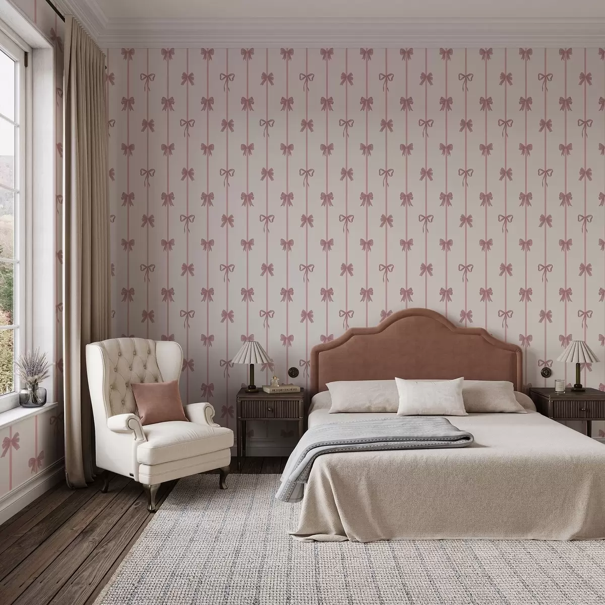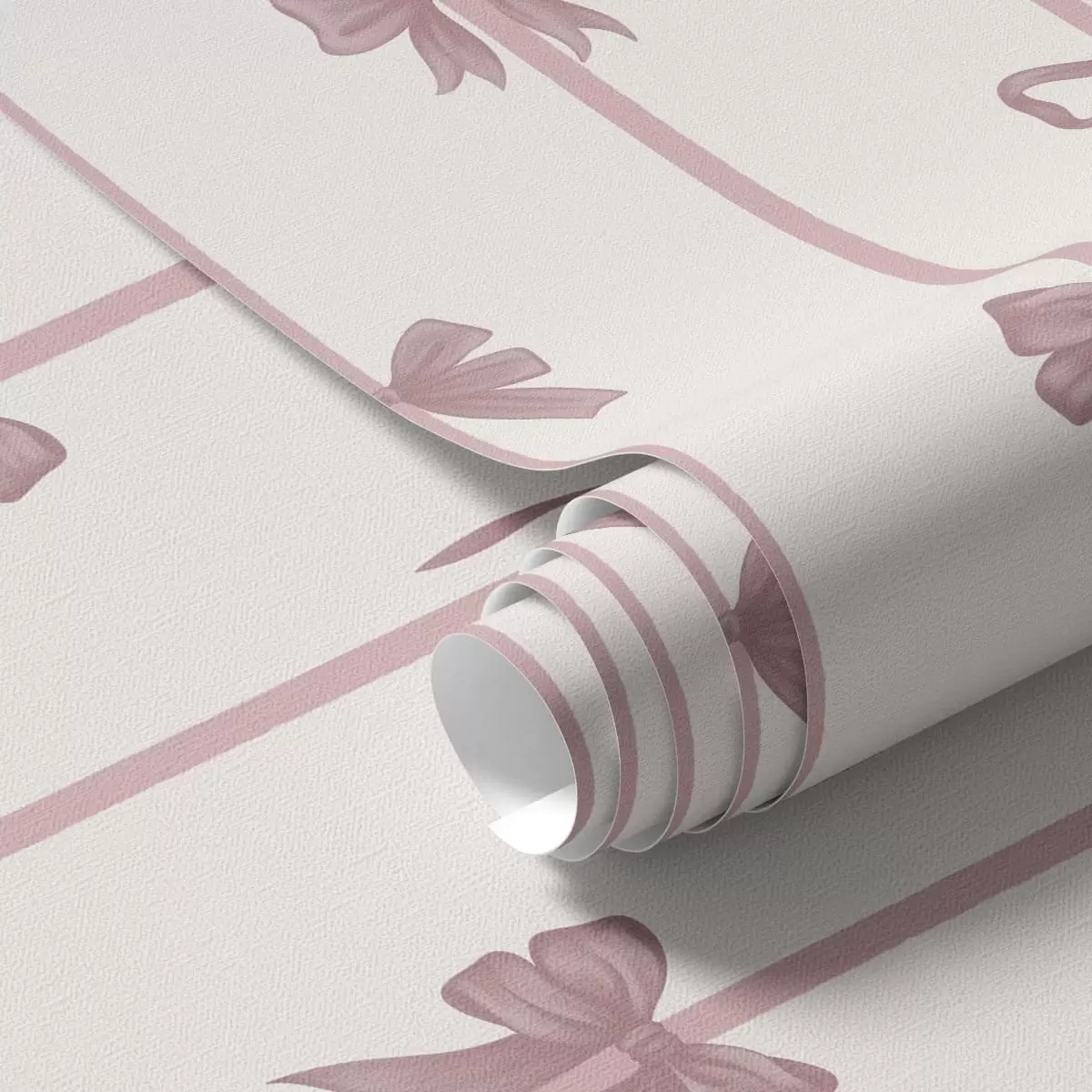 Tapeta Růžové mašličky se stužkami na světlém pozadí Nr. a01074