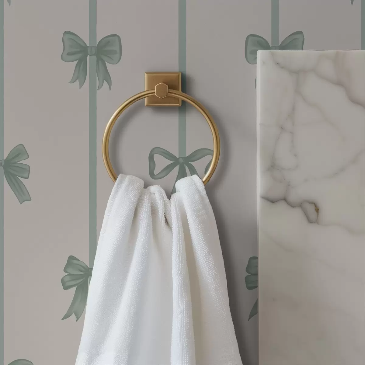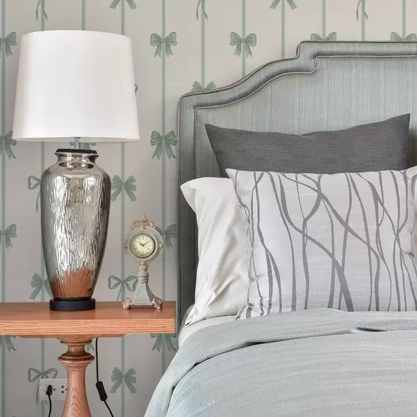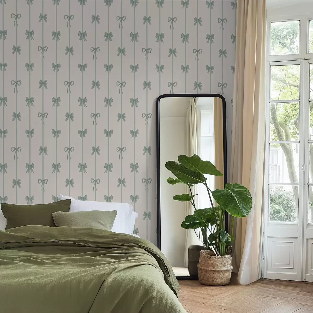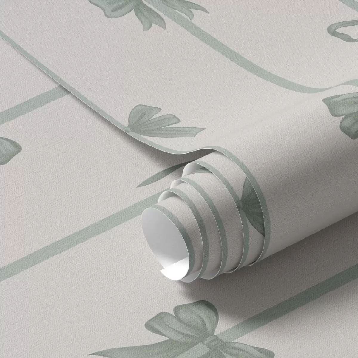 Tapeta Zelené mašle se stužkami na béžovém pozadí Nr. a01074v1