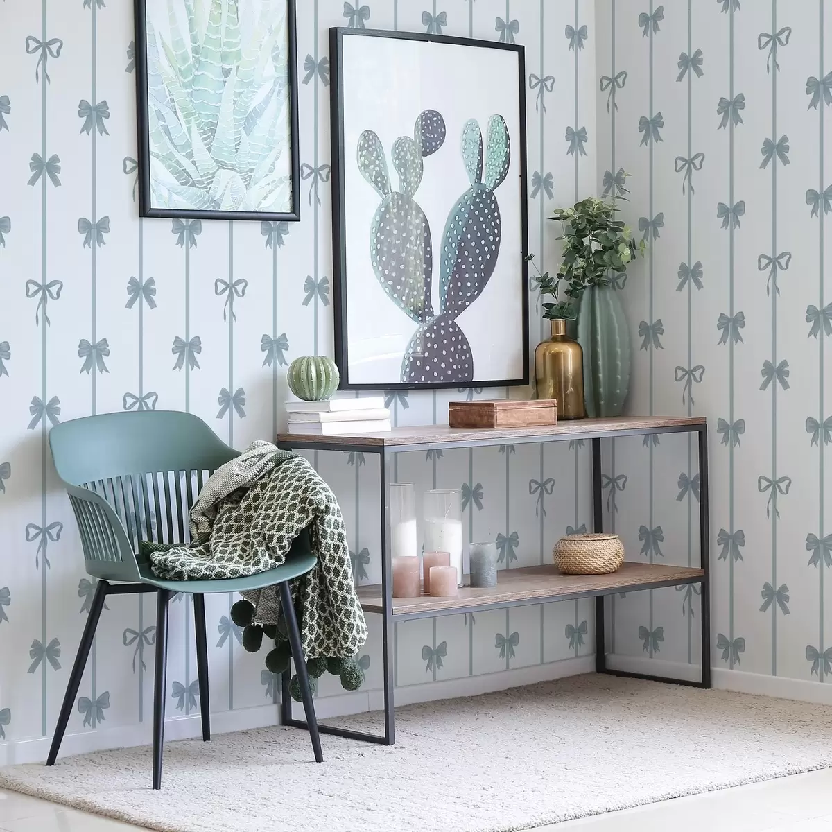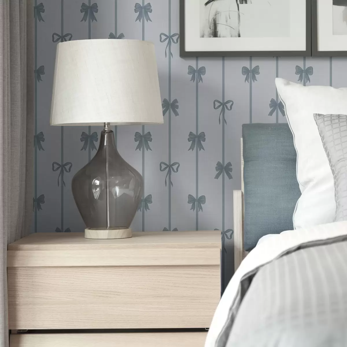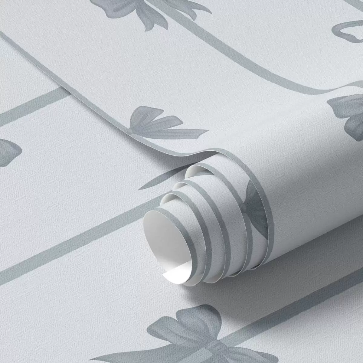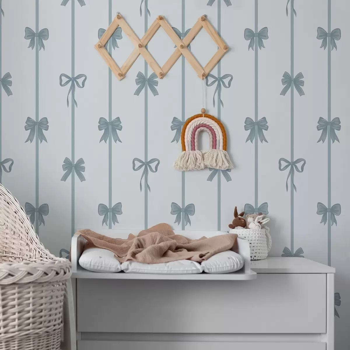 Tapeta Modré mašle se stužkami na světlém pozadí Nr. a01074v2