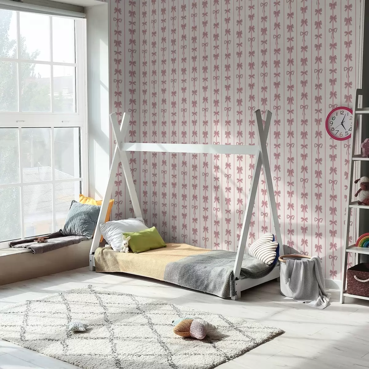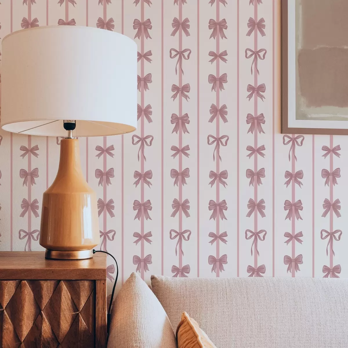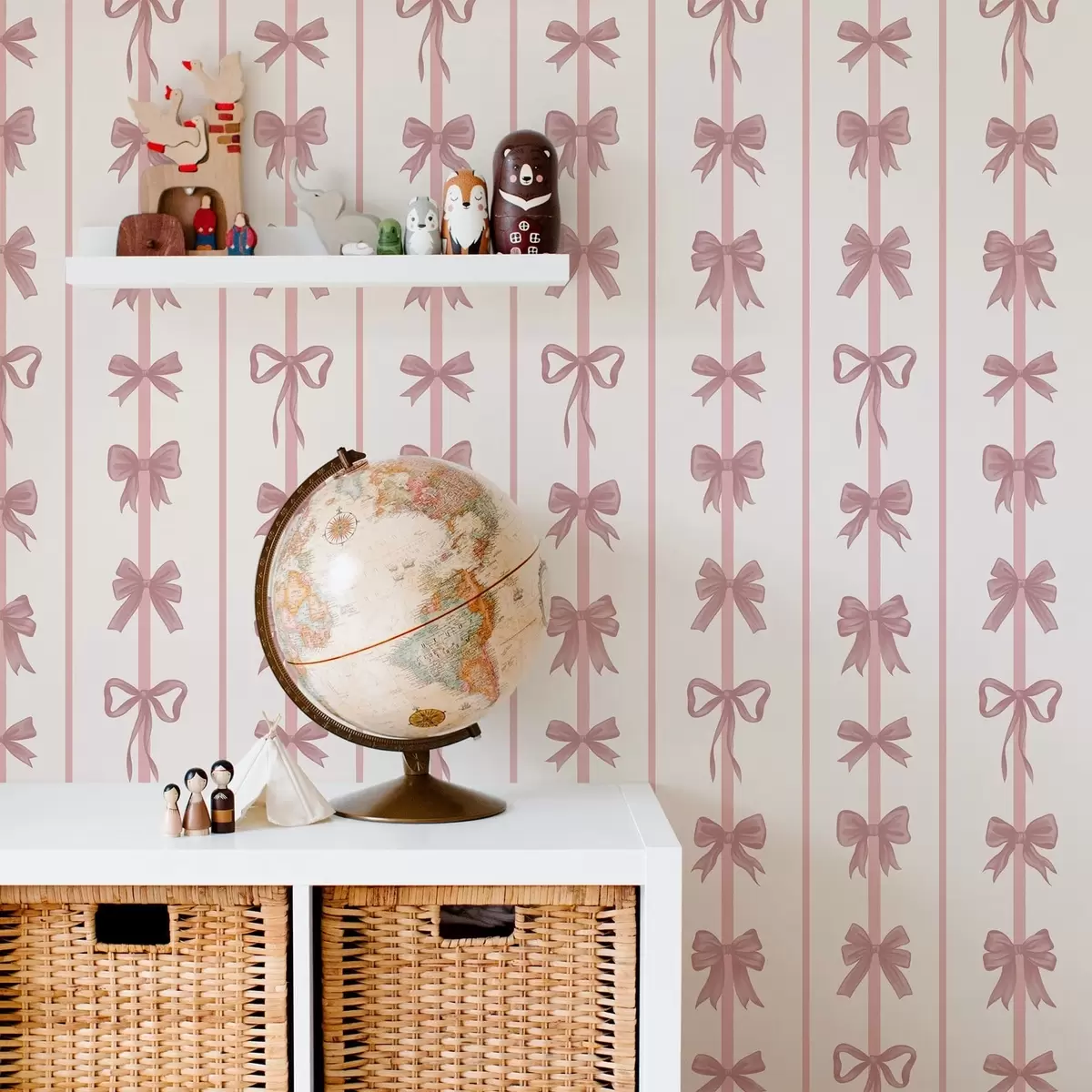Tapeta Růžové mašličky ve svislých pruzích na světlém pozadí Nr. a01075