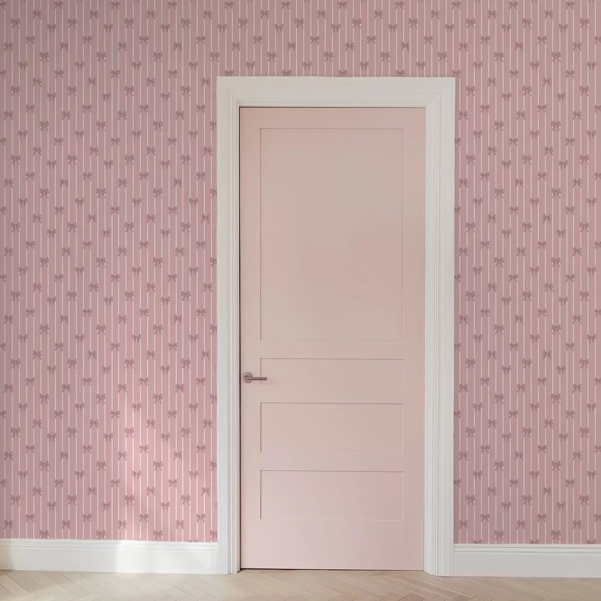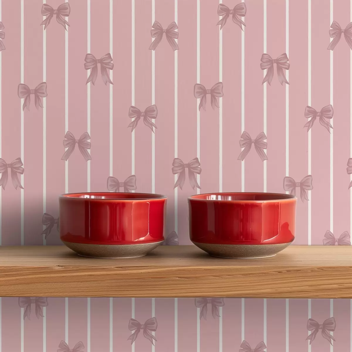 Tapeta Malé růžové mašličky na růžově pruhovaném pozadí Nr. a01076v1