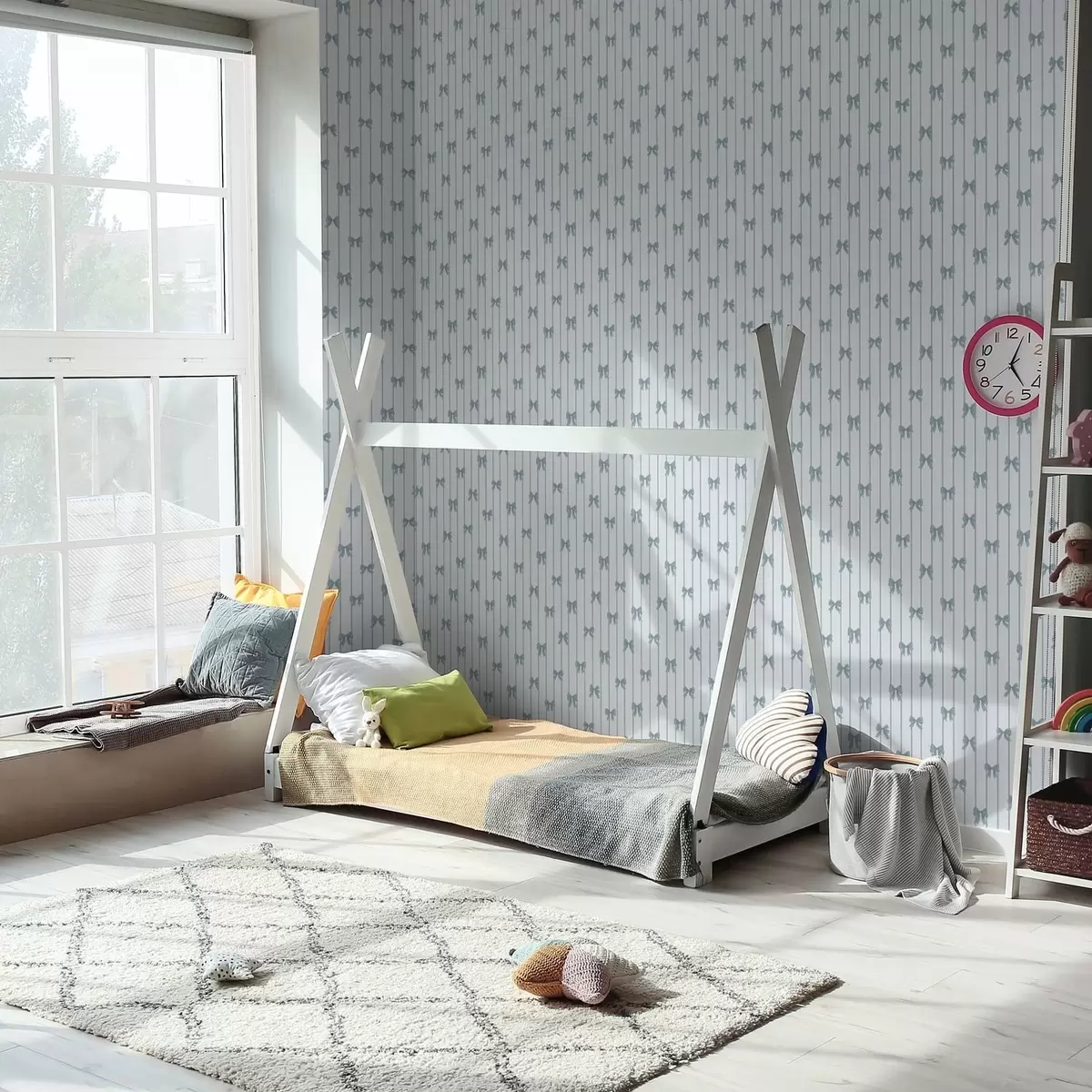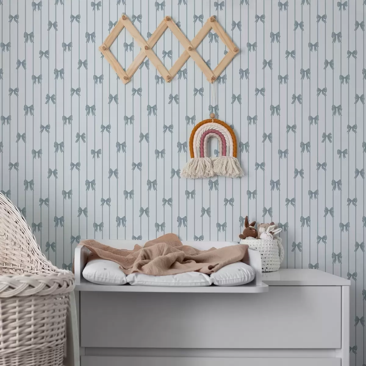 Tapeta Světlý pruhovaný vzor se stužkami a mašlemi Nr. a01076v3