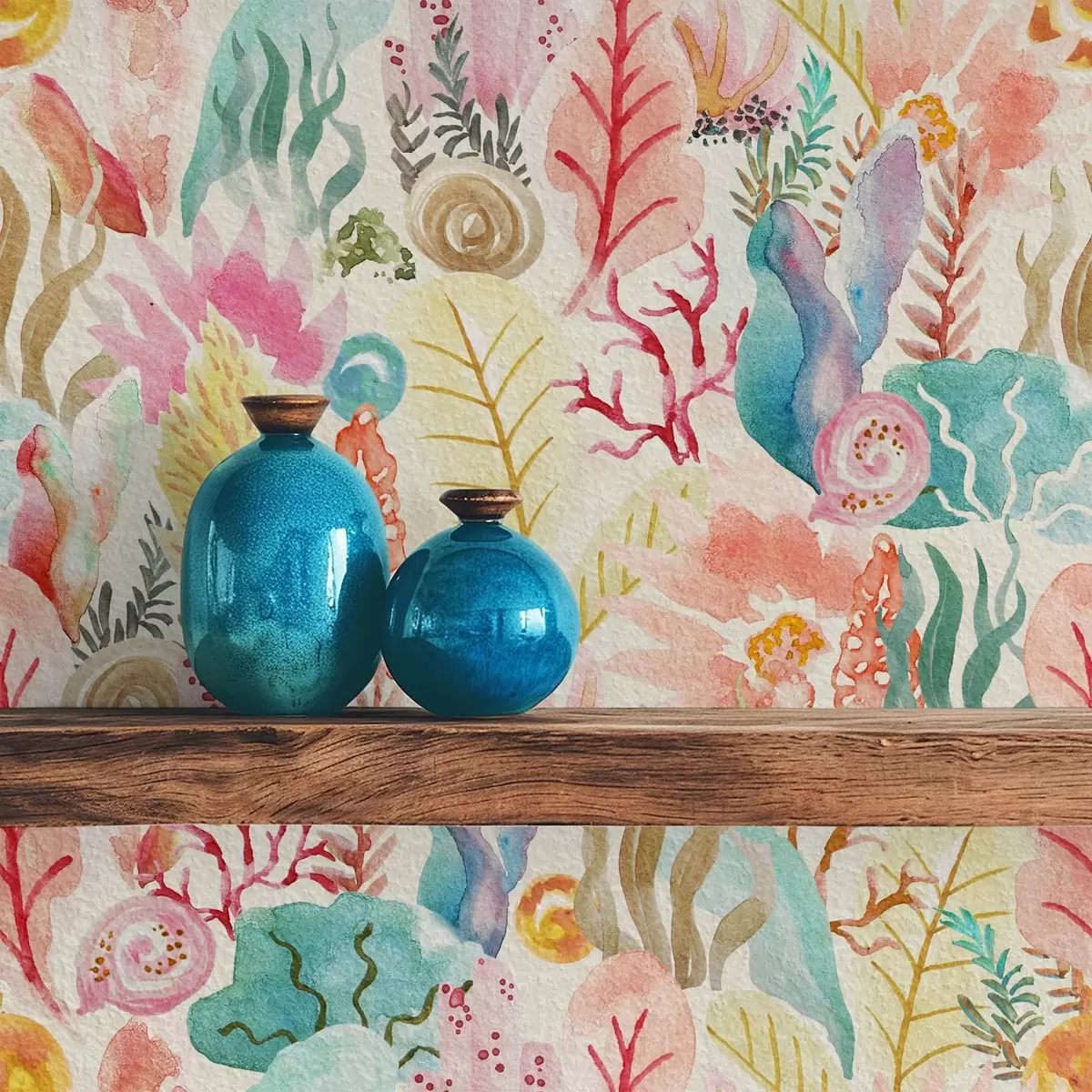 Tapeta Akvarelová podmořská zahrada s korály a mořskými řasami Nr. a01083