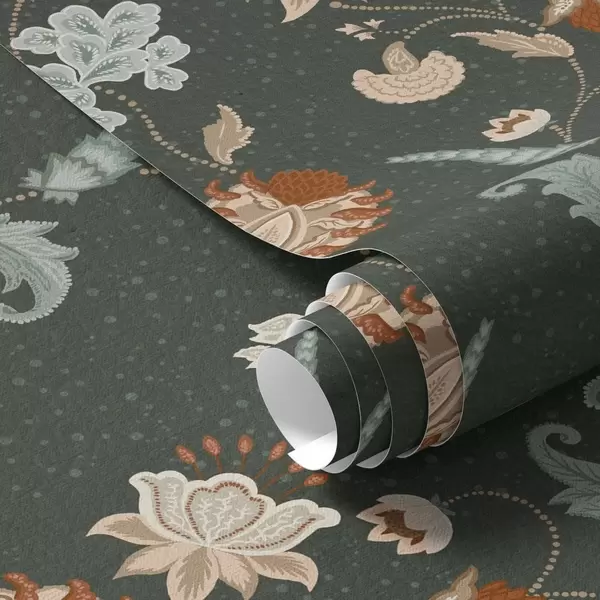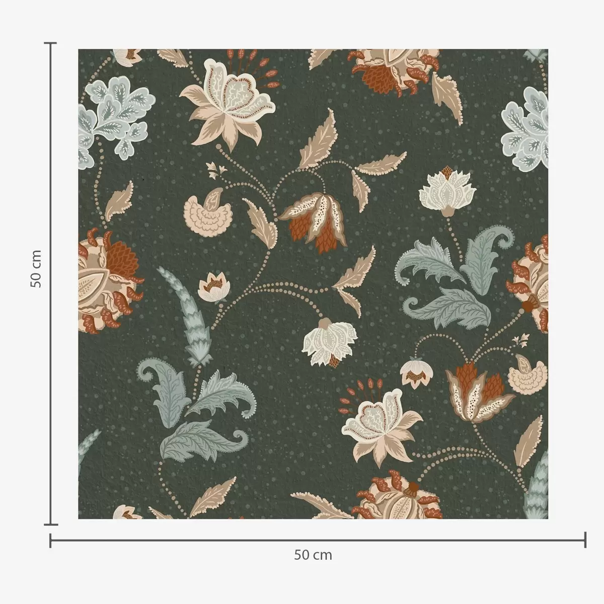 Tapeta Tmavě zelené pozadí s ozdobnými květinami a listy Nr. a01086
