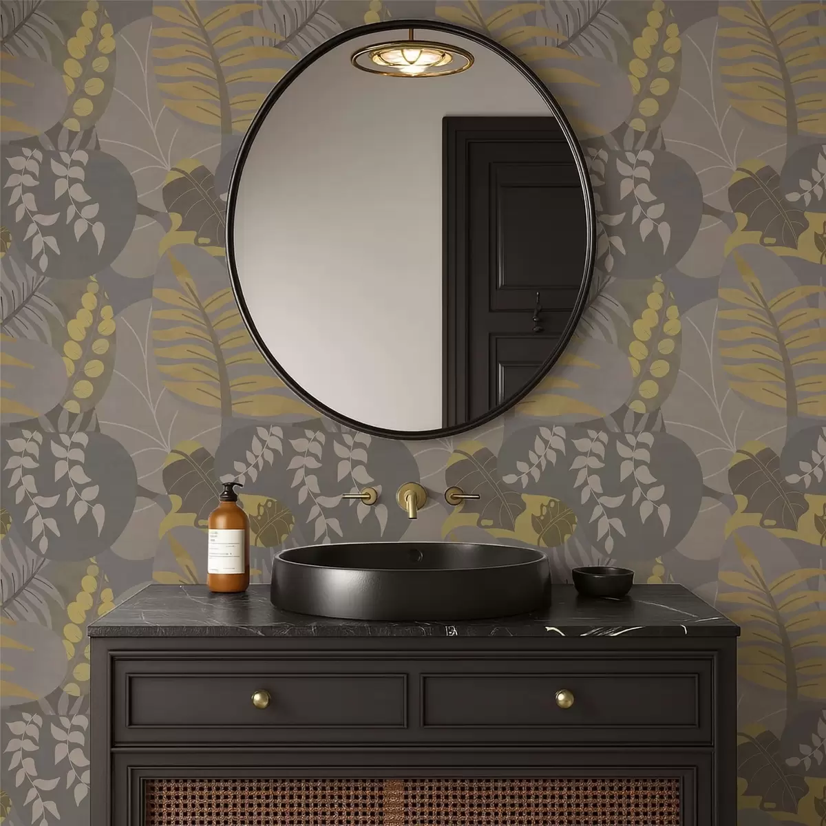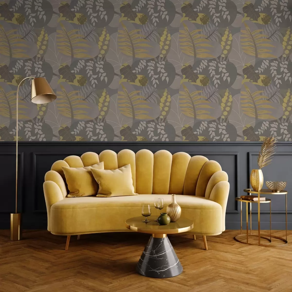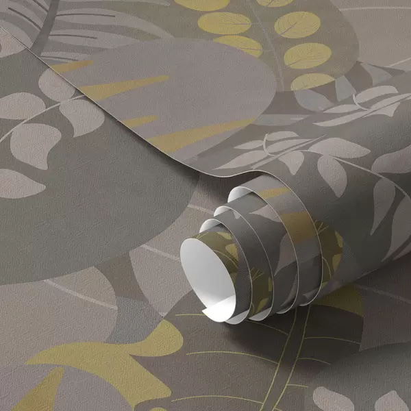 Tapeta Abstraktní listy v šedých a žlutých tónech Nr. a01112