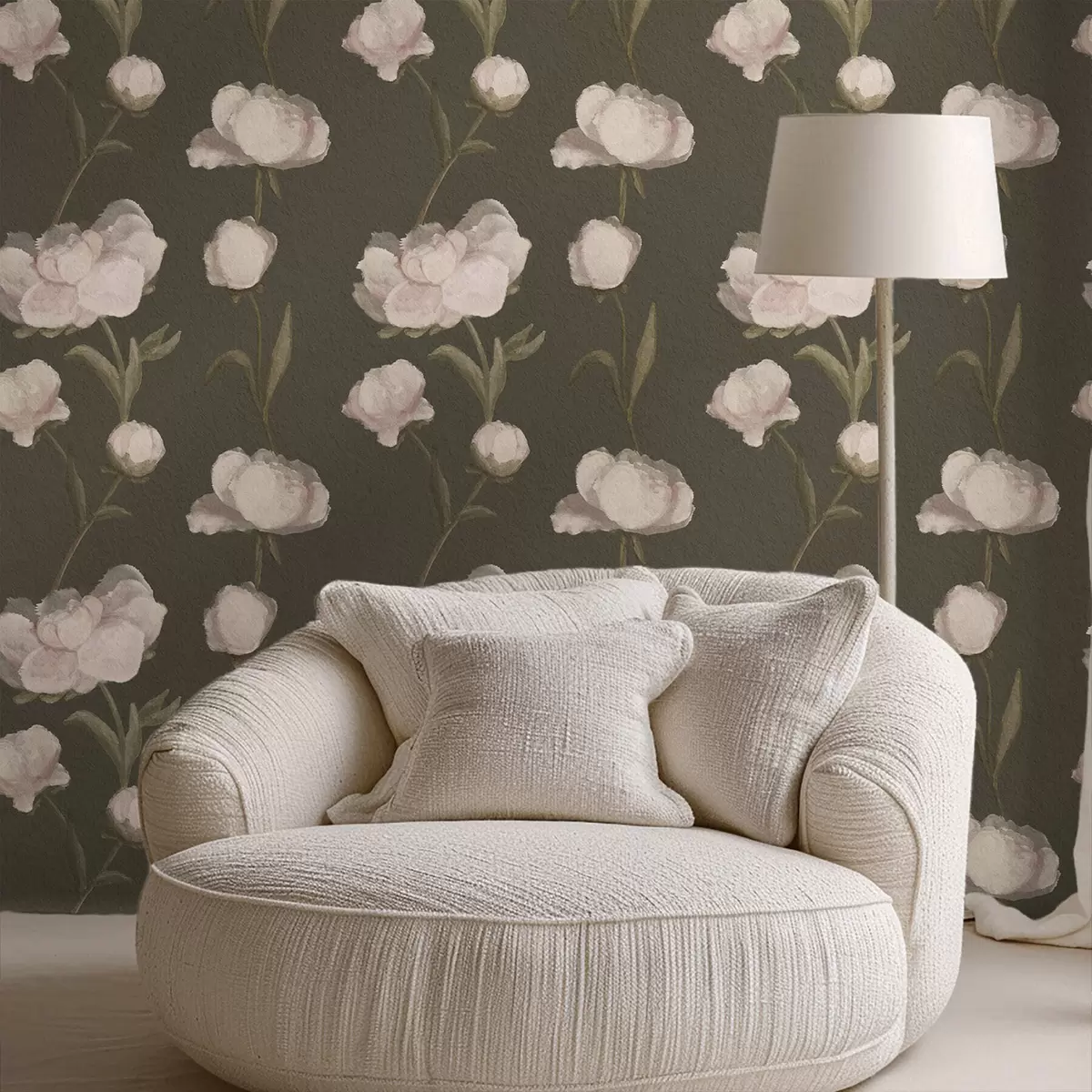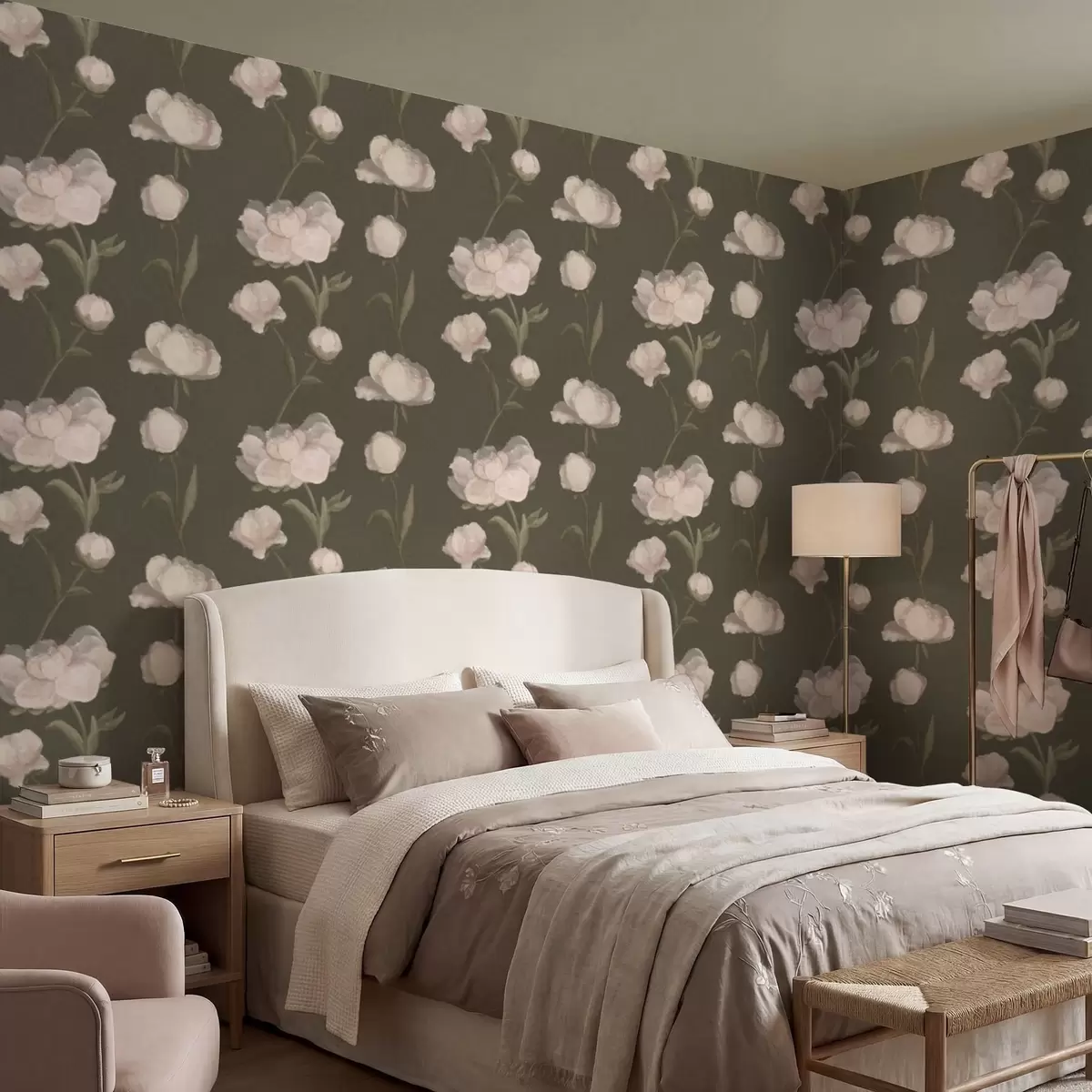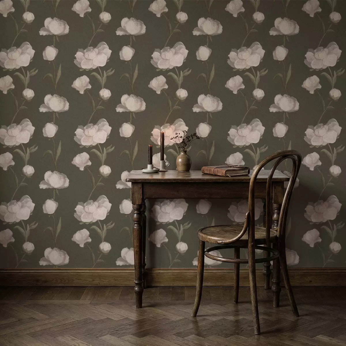 Tapeta Jemně růžové pivoňky na tmavém pozadí Nr. a01114v1