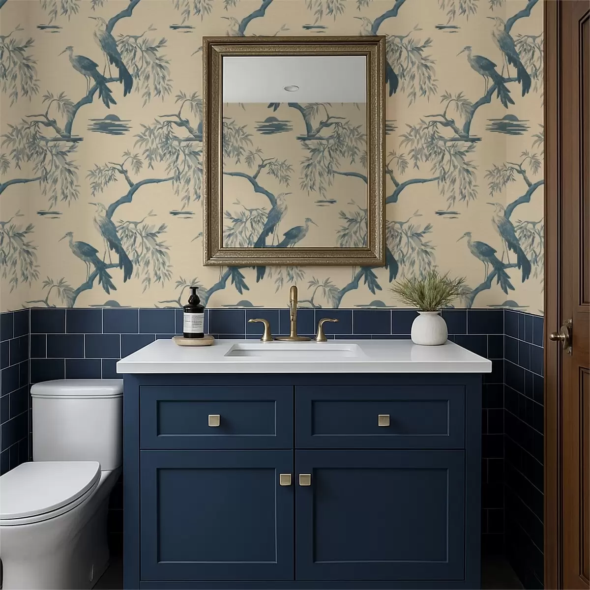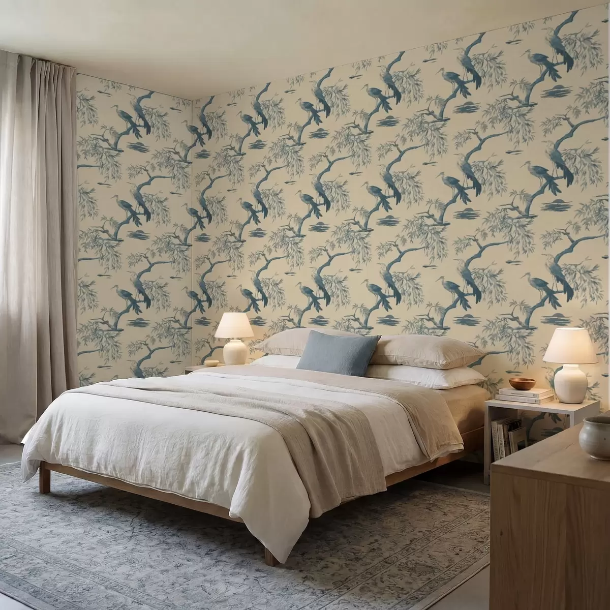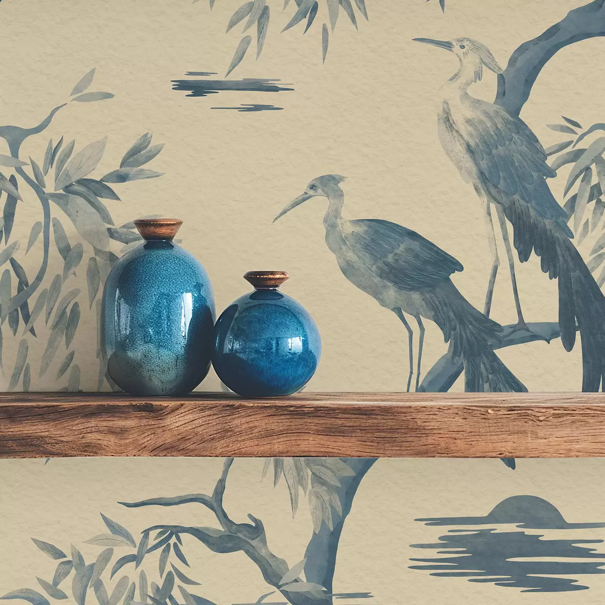 Tapeta Ptáci na větvi v modrých tónech Nr. a01116