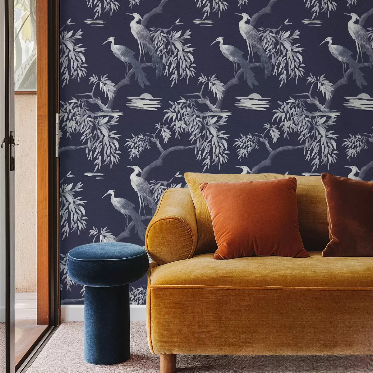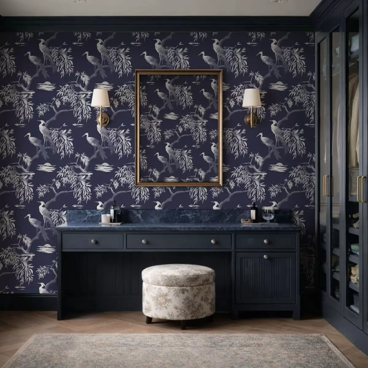 Tapeta Ptáci na větvi na tmavě modrém pozadí Nr. a01116v1