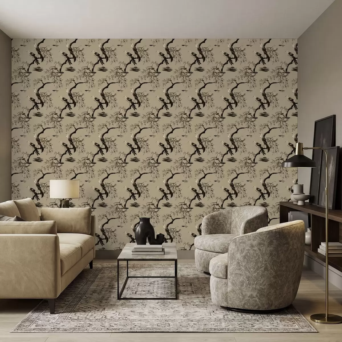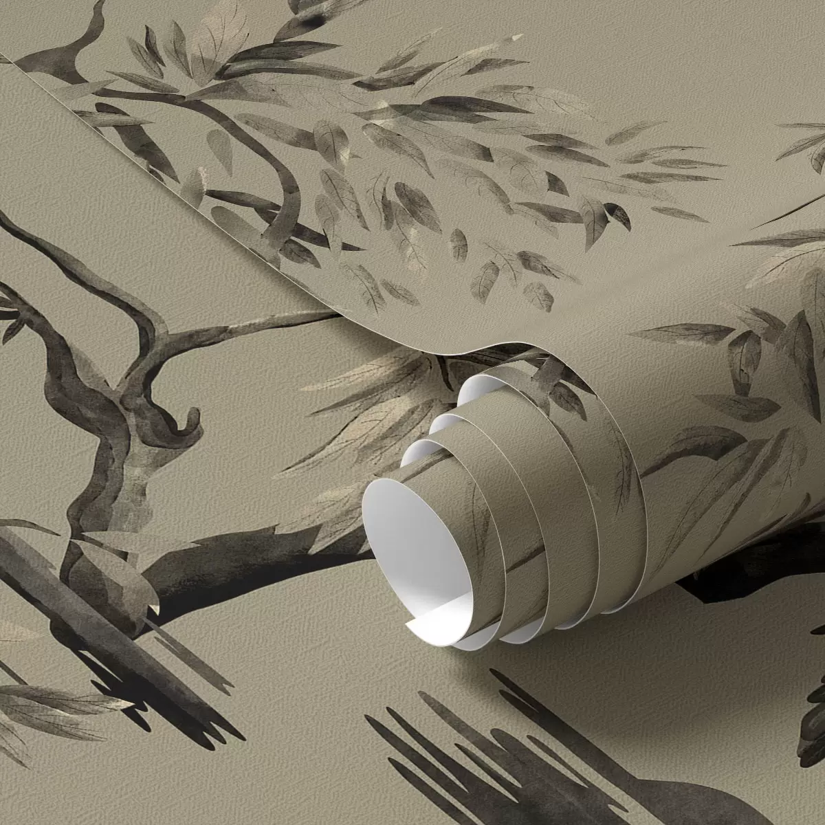 Tapeta Ptáci na větvi v monochromatických tónech Nr. a01116v2