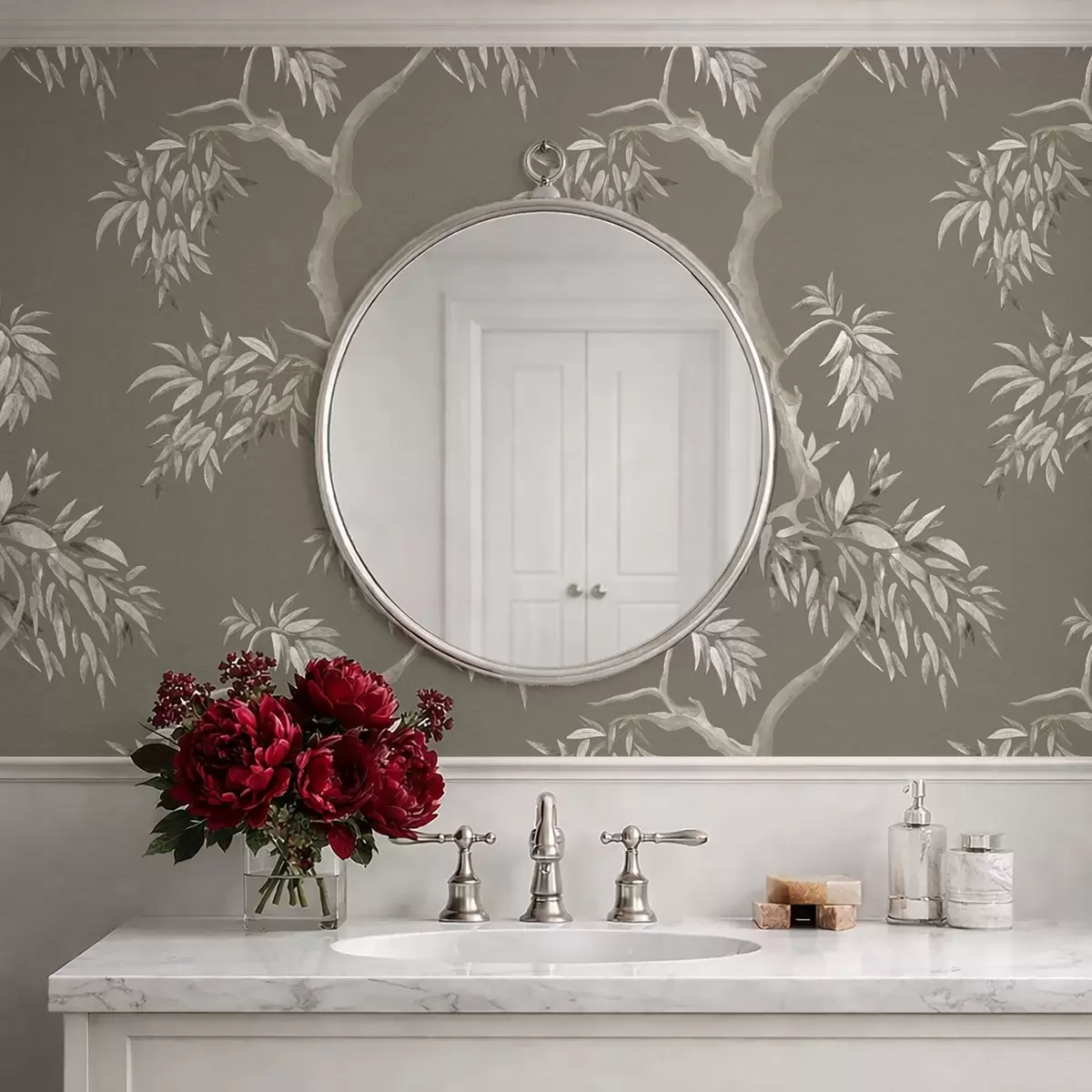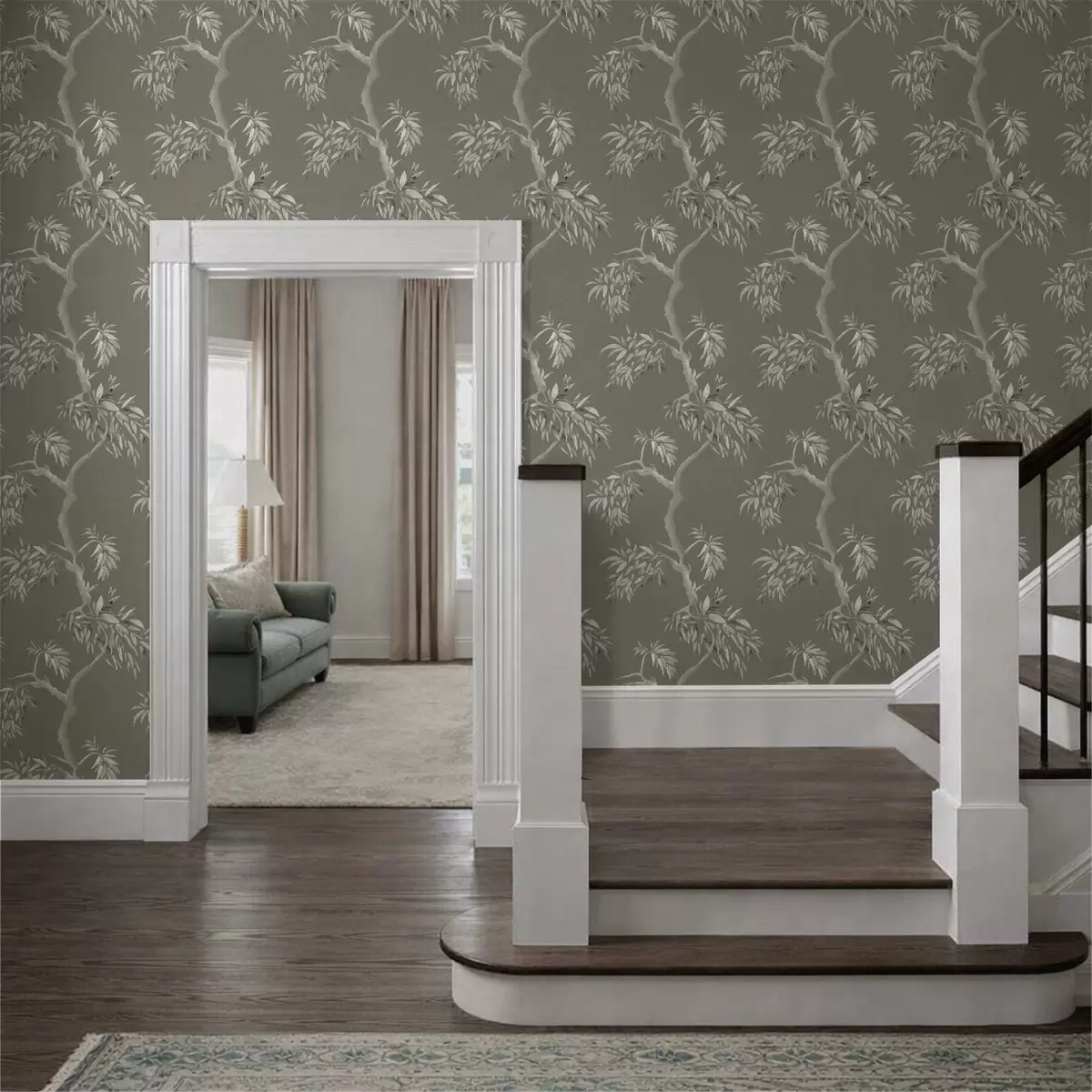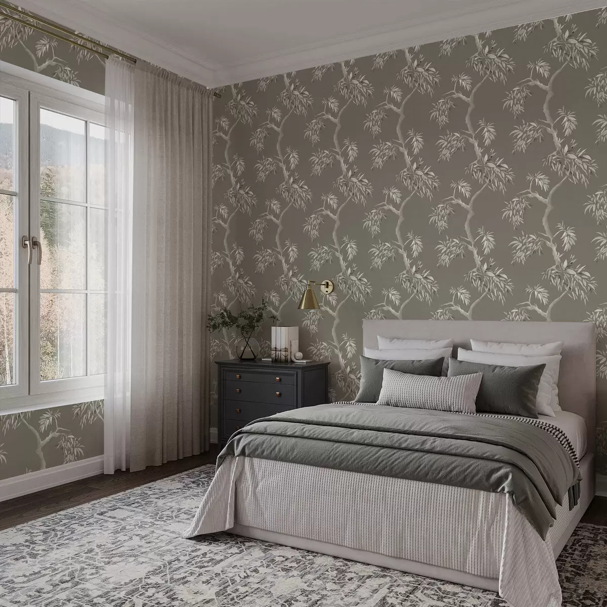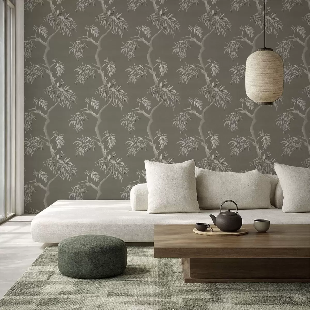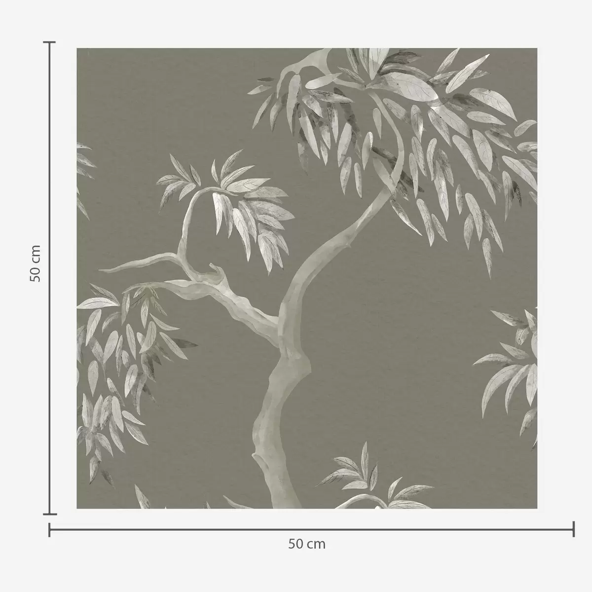 Tapeta Světlá větev s listy na olivovém pozadí Nr. a01117v1