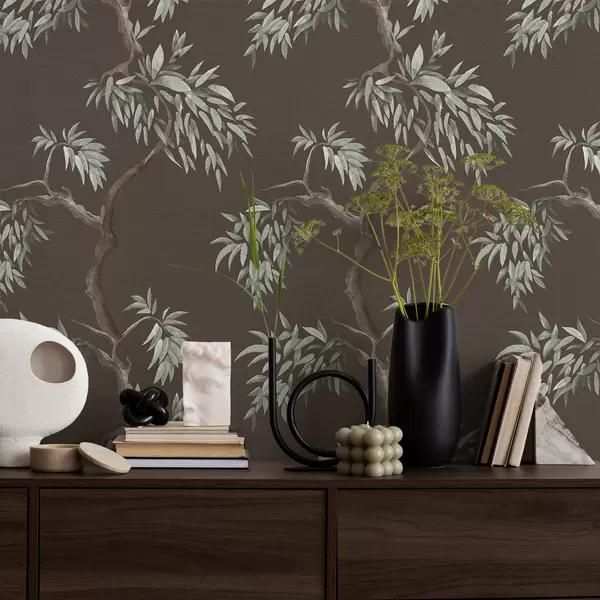 Tapeta Větev stromu s listy na hnědém pozadí Nr. a01117v3