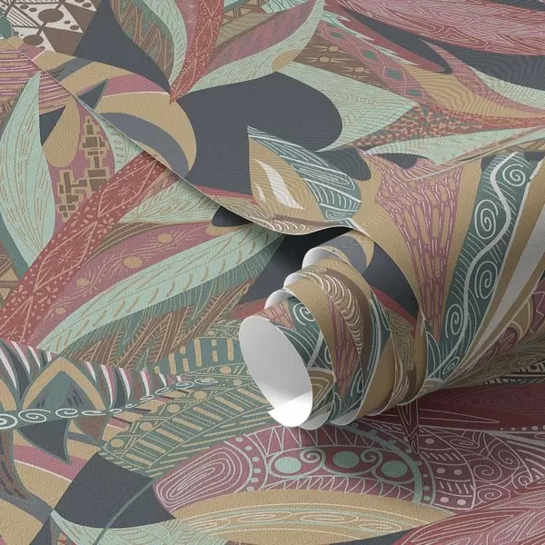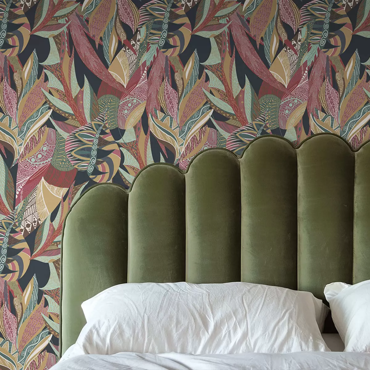 Tapeta Barevné vzorované listy na tmavém pozadí Nr. a01120