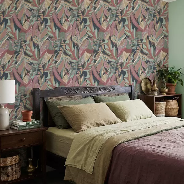 Tapeta Barevné vzorované listy na tmavém pozadí Nr. a01120