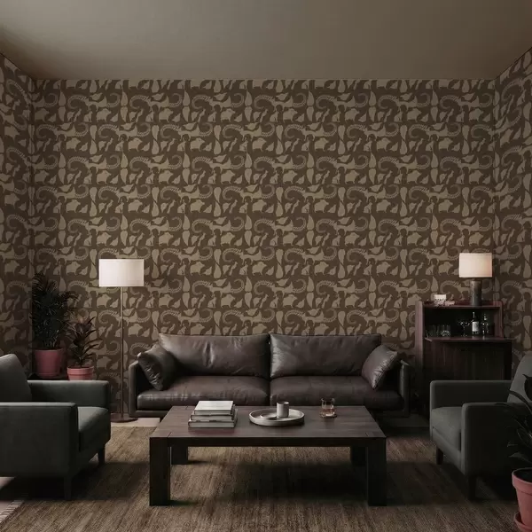 Tapeta Lesní vzor se zvířaty na hnědém pozadí Nr. a01121