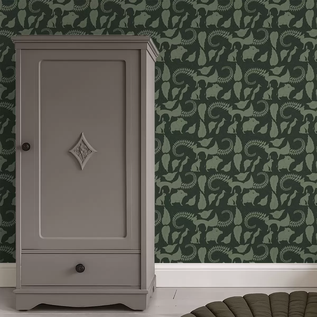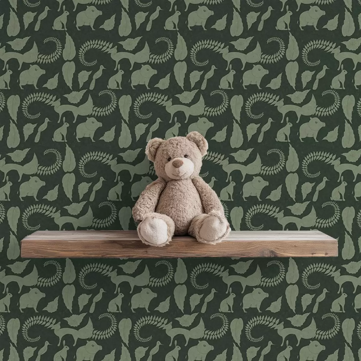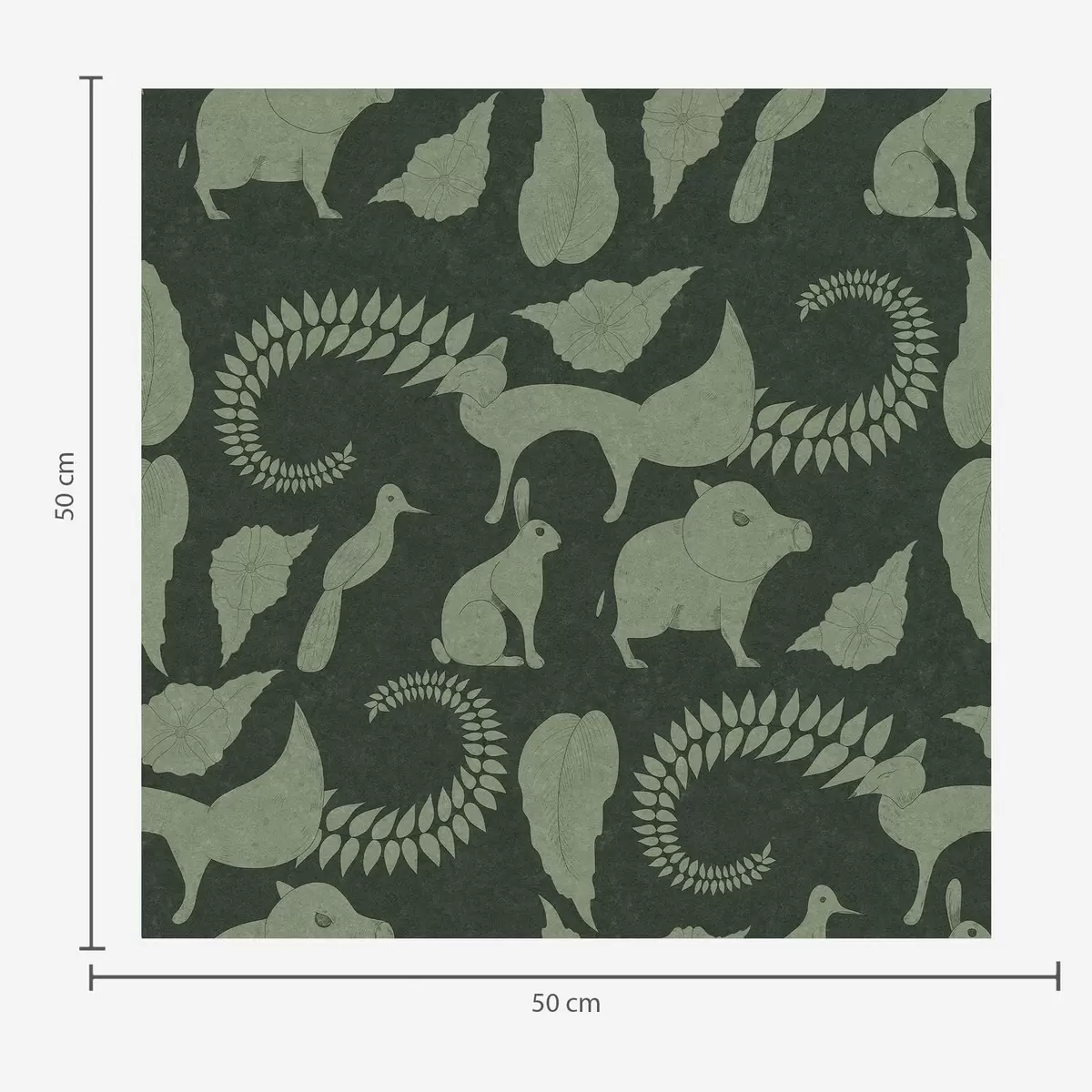 Tapeta Lesní vzor se zvířaty na zeleném pozadí Nr. a01121v1