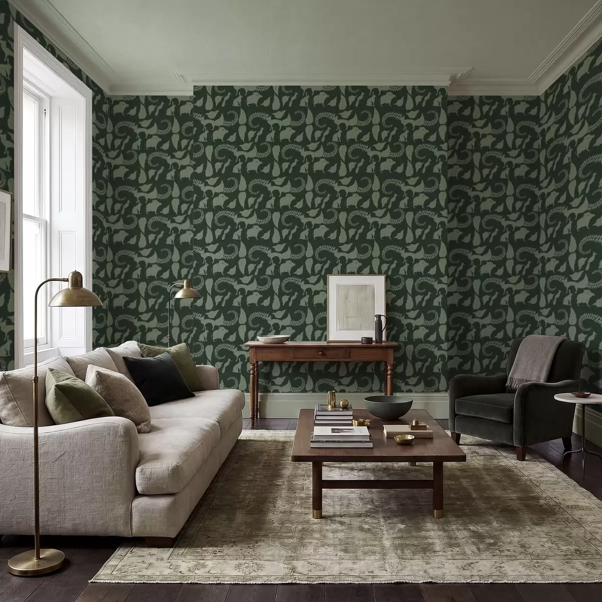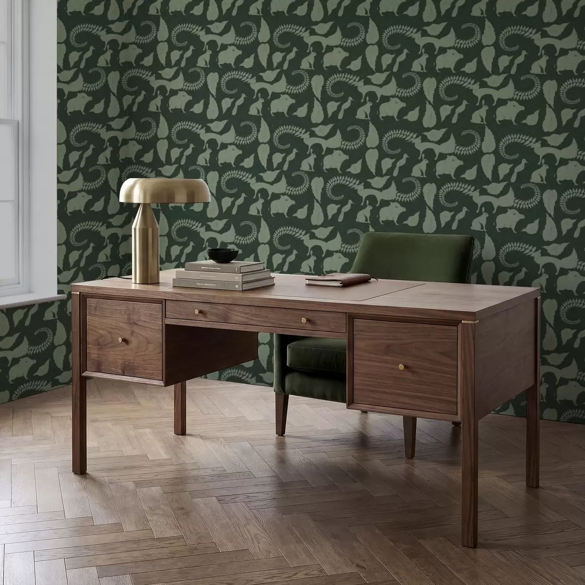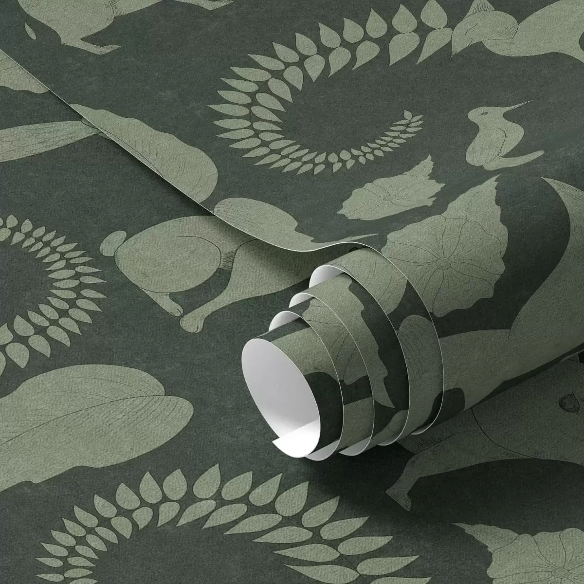 Tapeta Lesní vzor se zvířaty na zeleném pozadí Nr. a01121v1