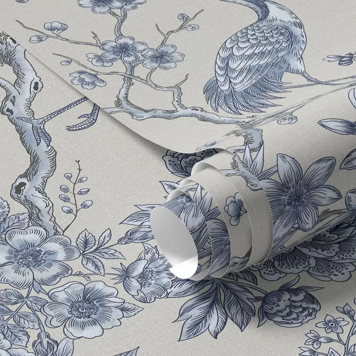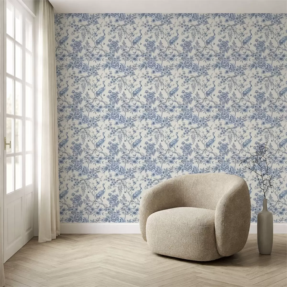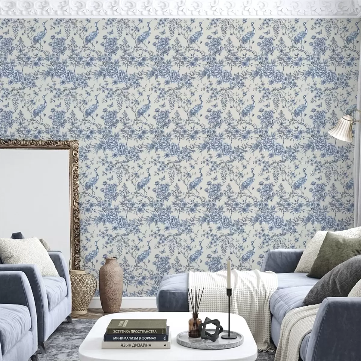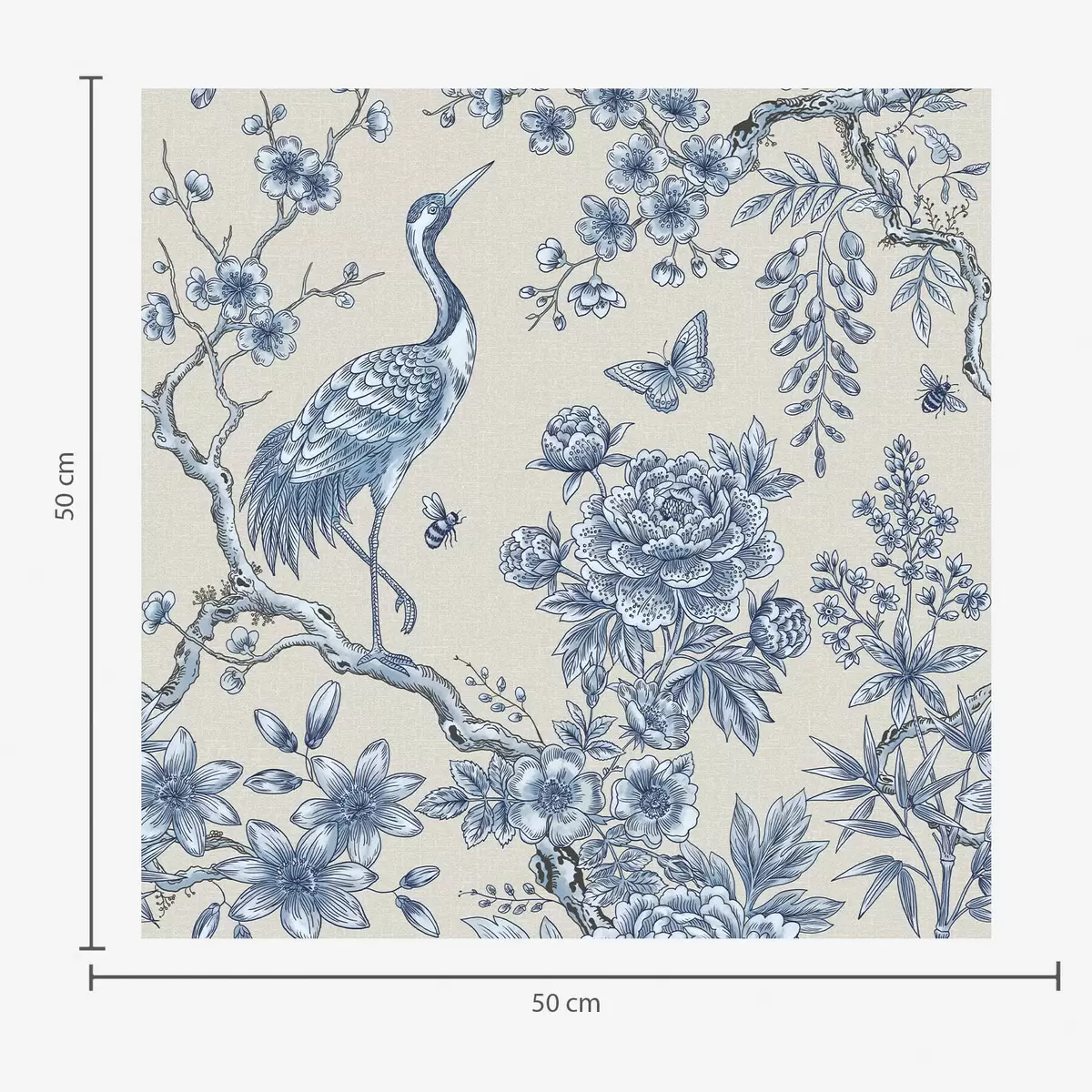 Tapeta Modrý květinový ornament s ptáčkem a větvičkami Nr. a01132