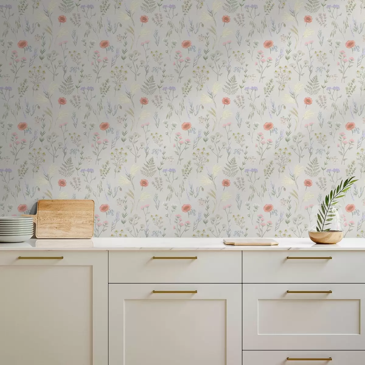 Tapeta Jemný vzor z polních květin na světlém pozadí Nr. a01152