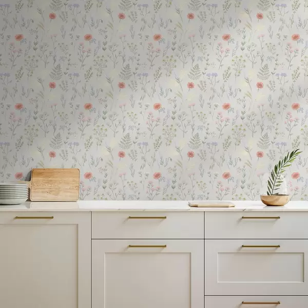 Tapeta Jemný vzor z polních květin na světlém pozadí Nr. a01152